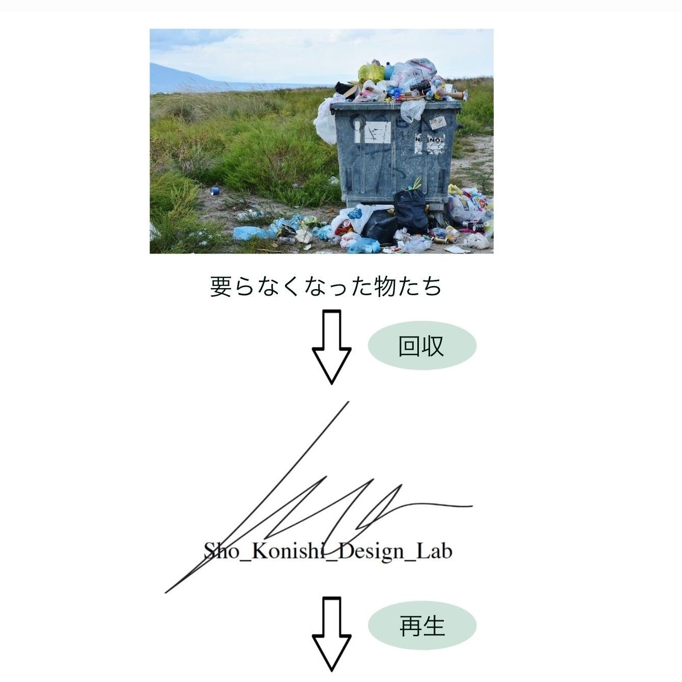 サステナブル(持続可能性)を研究している僕にとって"ゴミ"という概念はとても興味深い物で、いつもゴミに関心があります。今回日本に帰ってきて新しい気付きがあったのですが、ニューヨークではいらなくなった物(ゴミ)はいつでも路上に捨てられています。家電、家具はもちろん、クリスマスツリーなど様々です。そして、路上に捨てられた物は誰でも拾い、持ち帰る事ができます。僕もアート制作をする上でよく拾い集めました。これはアーティストにとって宝の山なのです!(もちろんゴミを破棄することは良くないですが…)ところが東京ではゴミの不法投棄で悩まされていたり、いらなくなった家具の廃棄に費用がかかったりとゴミで頭を悩ませている方がたくさんいる事に気付きました。そこでSho_Konishi_Design_Labスタジオではゴミを引き取り再利用していきます!いらなくなった物を回収し、デザインの力で価値を再生させ、再利用していくブランディングをしていきます!