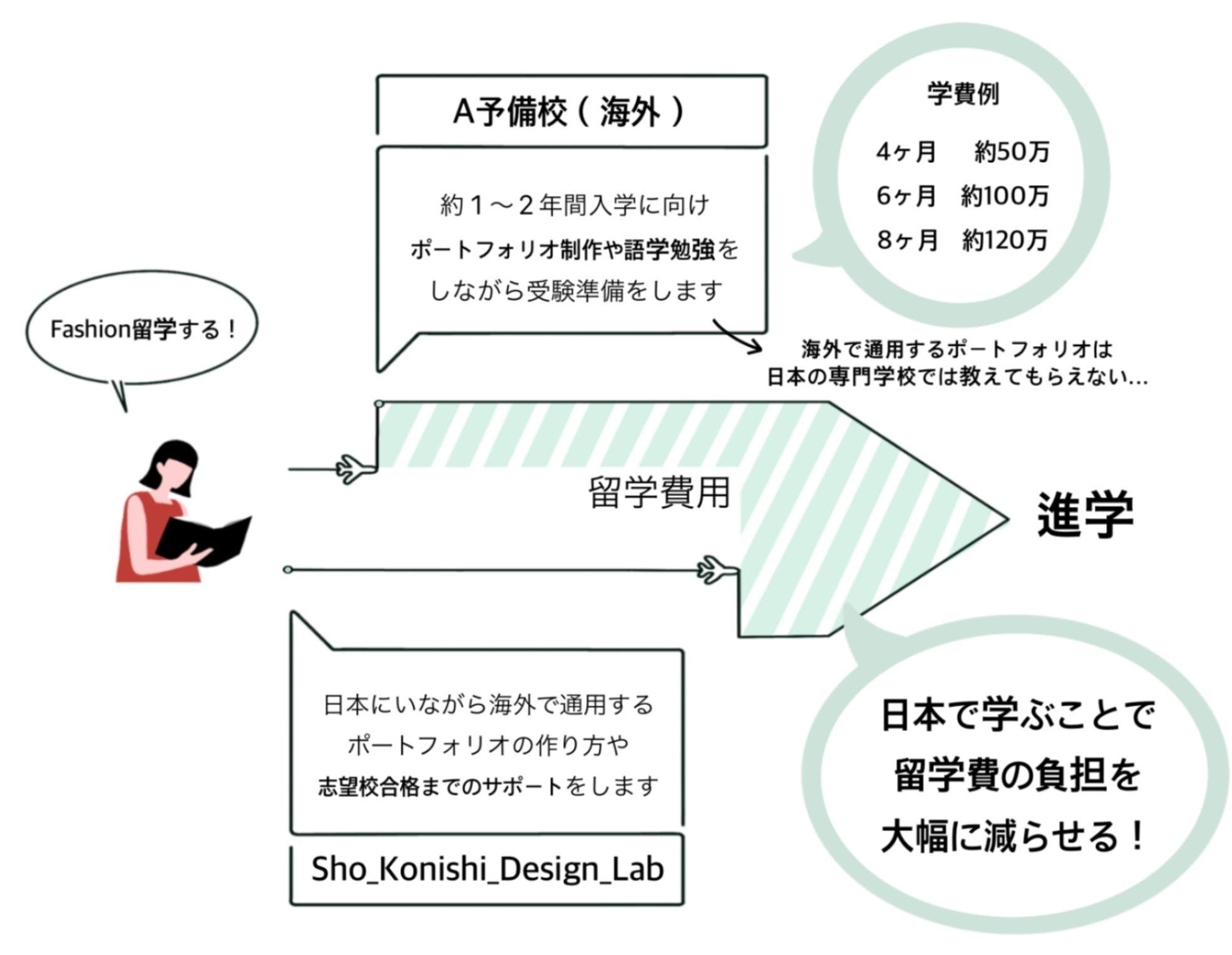 ・世界中のファッション大学への進学を視野に入れた進学サポート(翻訳、進路相談、奨学金情報の提供など)