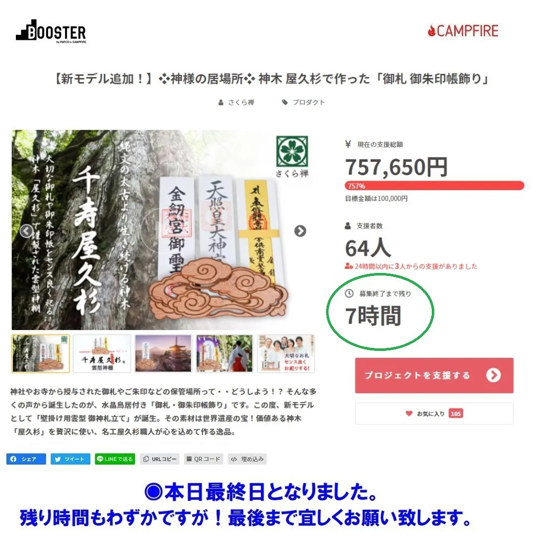 ◉本プロジェクトも残り【7時間】を切りましたが!最後まで宜しくお願い致します。