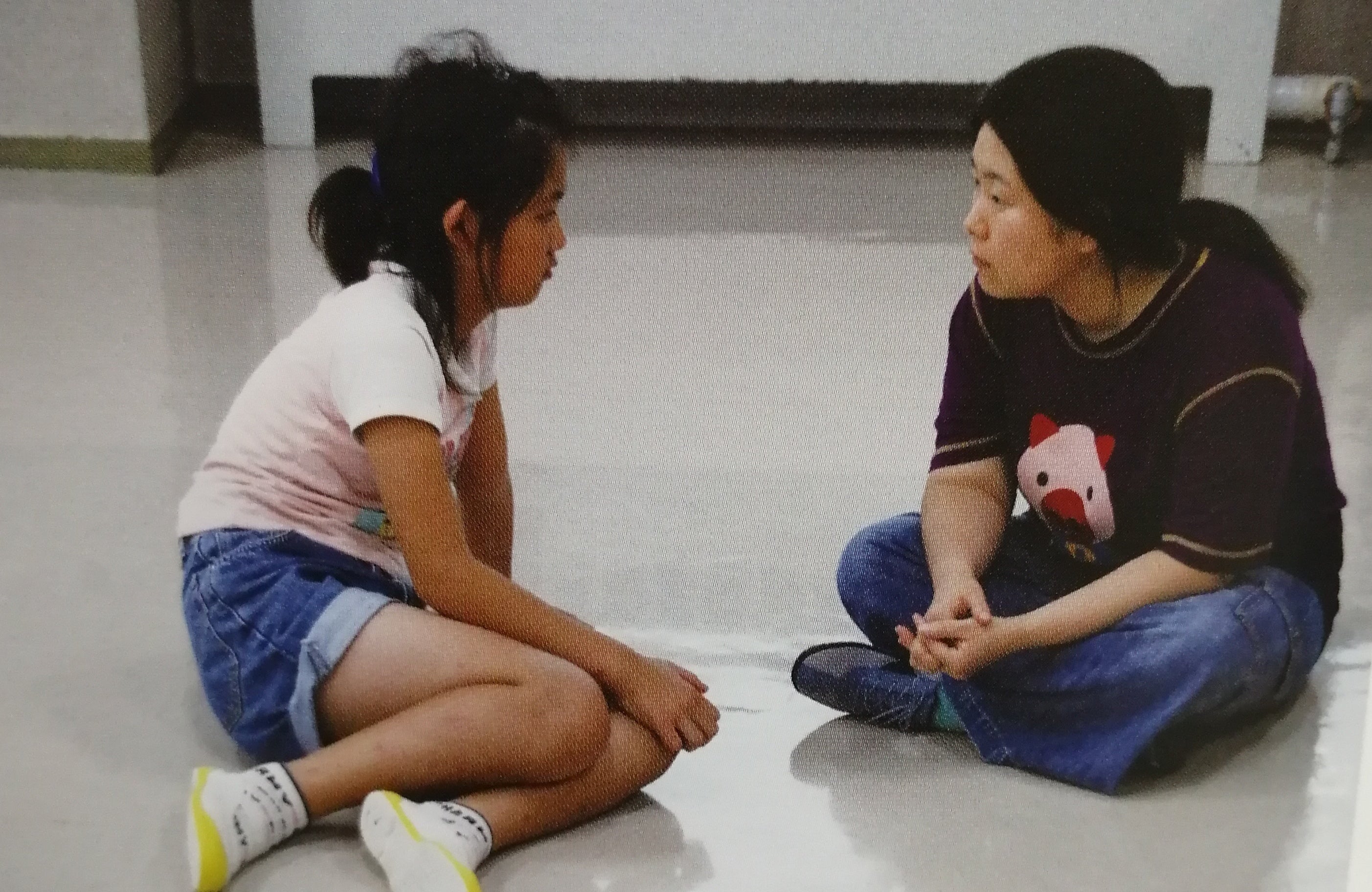 飯塚の「子どものためのドラマスクール」の参加者は小学校1年生から18歳まで。毎年5月から3月まで約一年をかけて活動し、後半は一つの物語を一緒に作りながら活動し、発表公演を実施していろいろな方に観てもらっています。台本はなく、活動の中でテーマを考え、設定を考え、気持ちを考えていきます。観ている人にわかる表現をするということで、自分の本気の感情と向き合っていくことが必要になります。