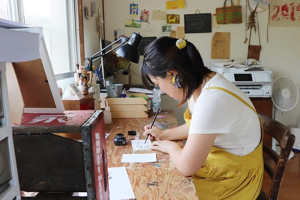 地元嘉麻市のバスの絵も手掛けるモモコ。創作活動は全国に広がってます。