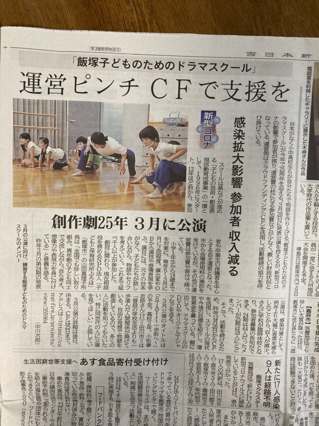 今朝の西日本新聞にクラウドファンディング挑戦の記事を載せてもらいました。
