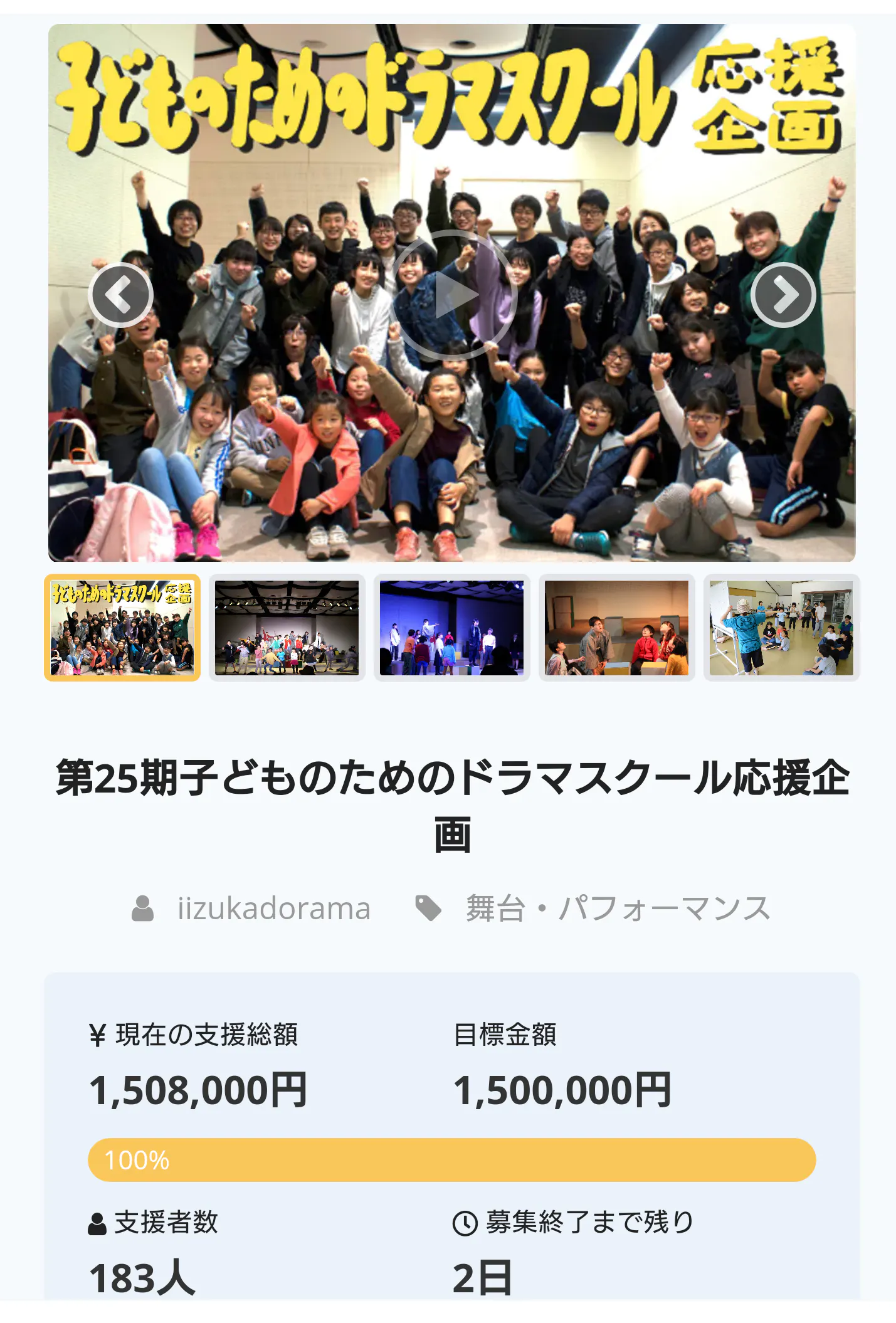 まだ、クラウドファンディング、残り2日あります。目標額は達成しましたが、更なる充実した活動に向けて残り2日よろしくお願いいたします。