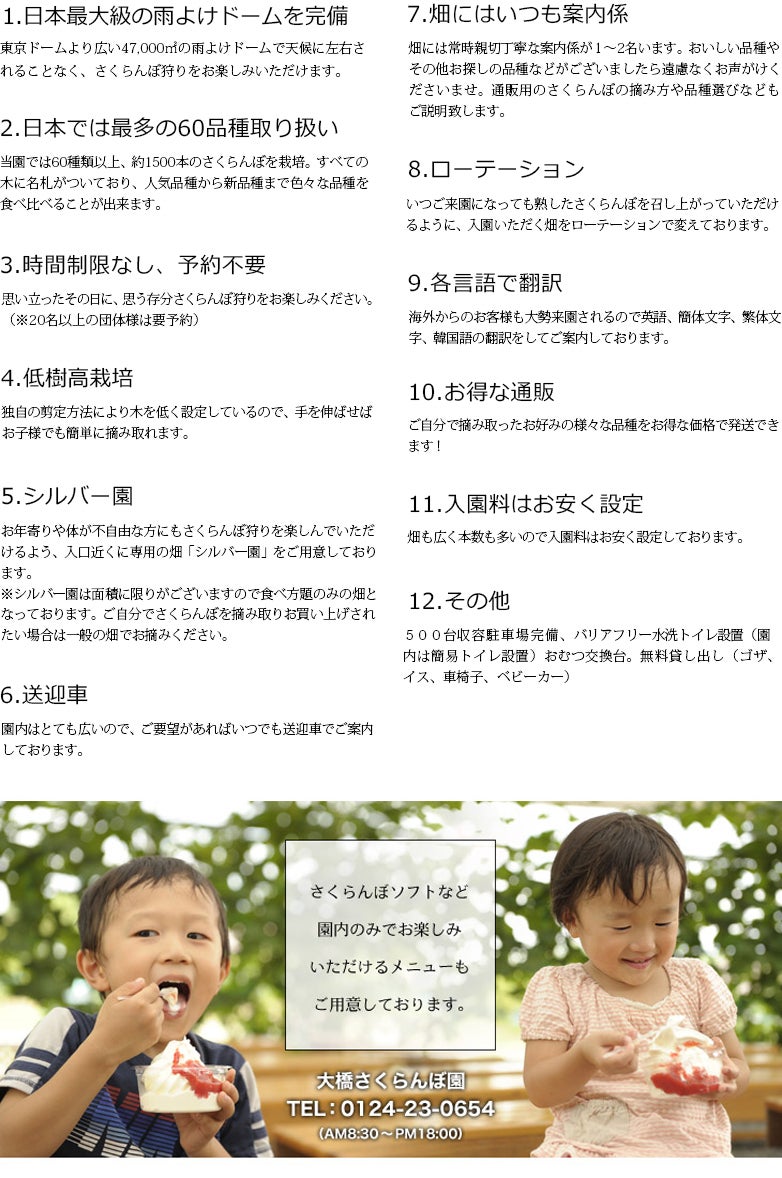 大橋さくらんぼ園は『さくらんぼ狩り』がメインの観光農園です。