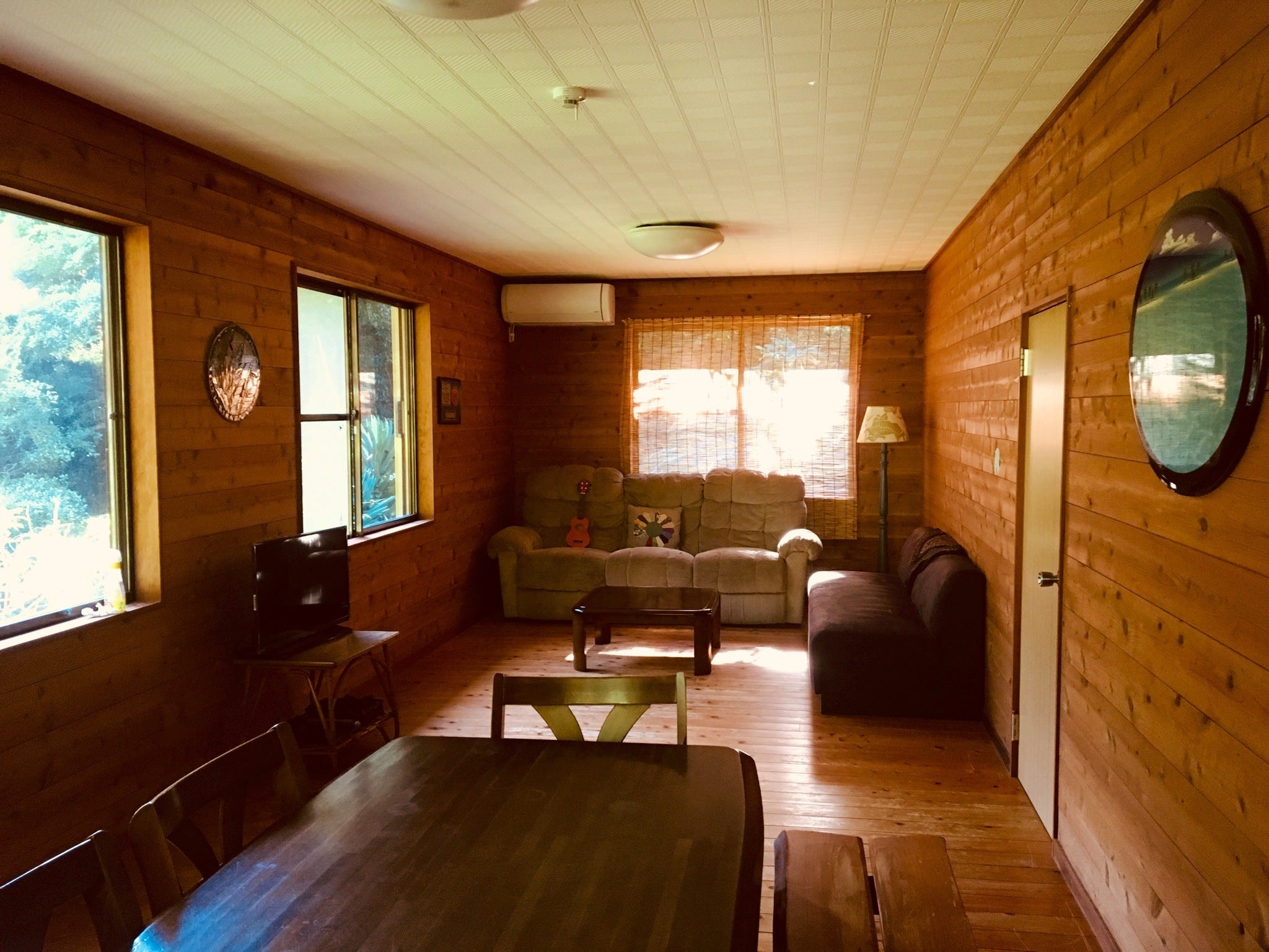 約13年前にこの土地を購入しました。長い間手付かずでしたが、数年前から私道の整備などを始め、まず敷地内にある3つの建物の内比較的1番新しい建物をリフォームして、ビーチハウスとして去年から貸し出しました。二つ目の建物は初代オーナーの書斎だったユニークで小さな建物で去年に床壁天井を綺麗にリフォームしました。