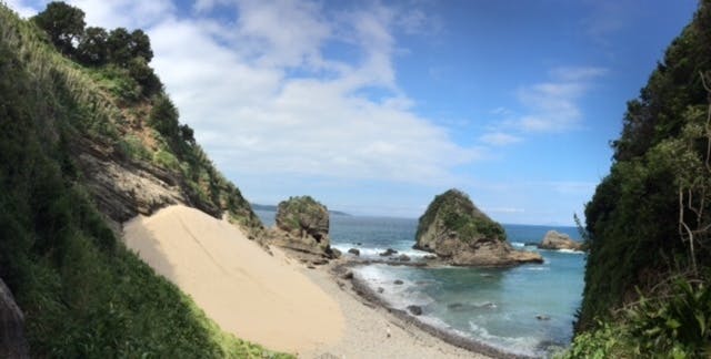 来て頂いたらすぐわかって頂けると思いますが、ここ田牛は本当にいいところで、周りには最高ランクの水質AAの海、不思議なパワースポット竜宮神社の竜宮窟(https://izugeopark.org/geosites/ryugukutsu/)、自然が作った30度の傾斜のサンドスキー浜(http://shizuoka.mytabi.net/izu/archives/toji-sand-ski.php)などがすぐ目の前です。