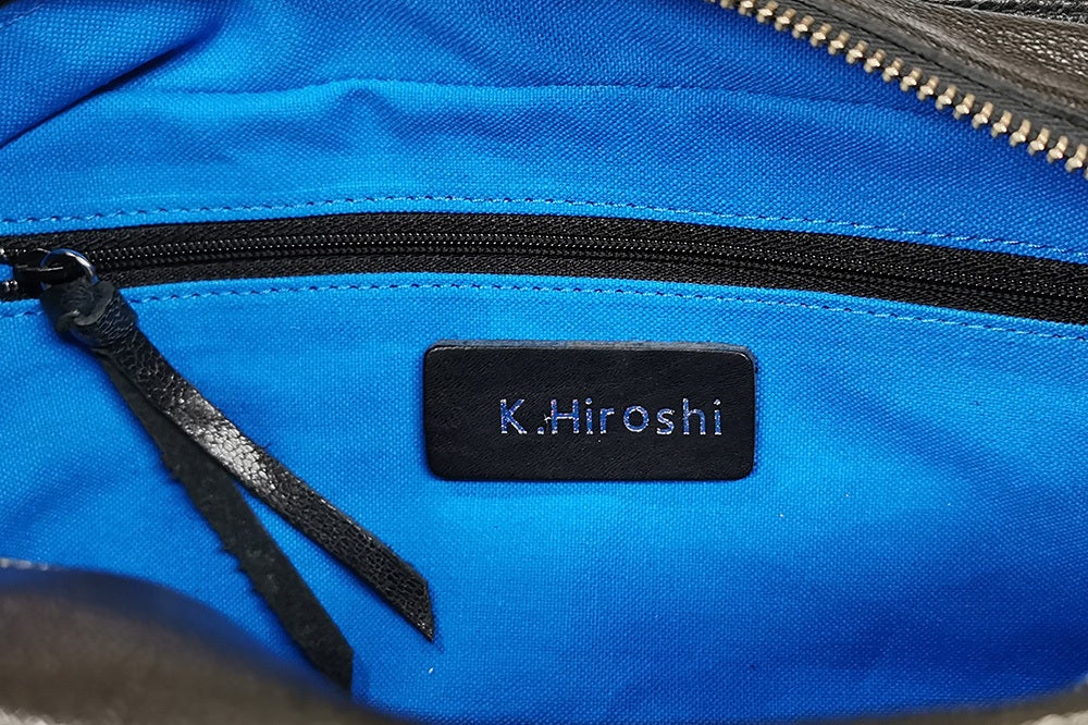 ※こちらはミニボストンでのイメージ画像です。お名前が中央に来るように箔押した革をファスナーポケットの面に縫製させていただきます。