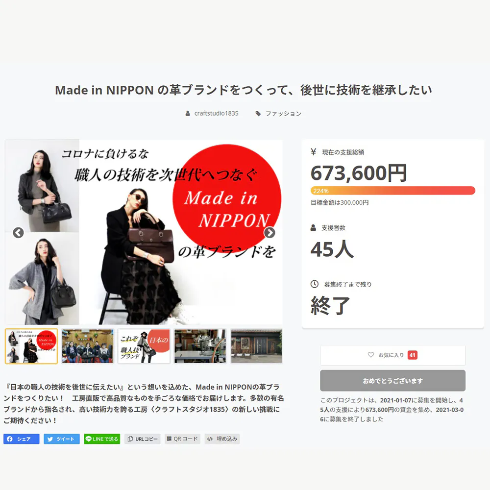 「Made in NIPPON の革ブランドをつくって、後世に技術を継承したい」プロジェクトオーナーのcraftstudio1835の熊谷です。