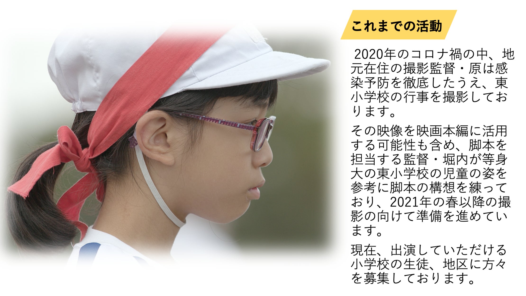 2023/04/12 23:12お世話になっております、撮影監督の原ともうします。みなさまにご支援を頂きました、映画「東小学校」が無事完成いたしました。7月に出雲市にあります映画館Tジョイ出雲で先行上映がはじまるのを皮切りに、東京など全国の映画館での上映が予定されています。公開を前に、出雲市での先行試写会のご案内を試写会参加がリターンに含まれている方にメールで送らせて頂きました。もしご案内が届いていない方がいらっしゃいましたら、申し訳ございませんが、下記の連絡先までお知らせ頂けたらと思います。よろしくお願いいたします。撮影監督:原(090-4898-8576)メール:studio.h74@gmail.com もっと見る映画が完成いたしました