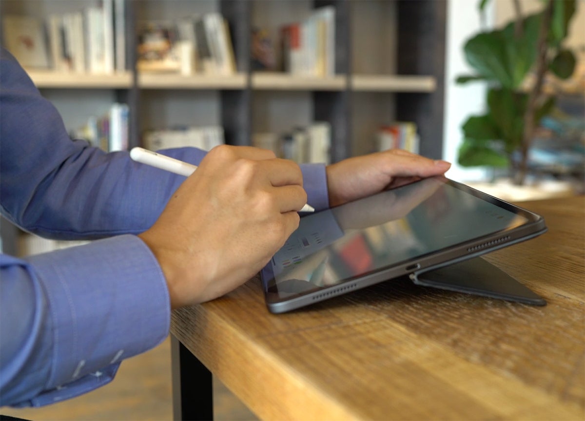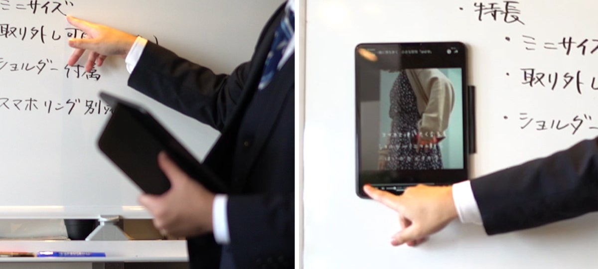 商談時に、iPadでメモや商品のイメージを書き取りながら話すこともしばしば。そんな時に、「描きやすい角度」・「見せやすい角度」が瞬時でできるだけで、取引先相手への印象もぐっと変わります。