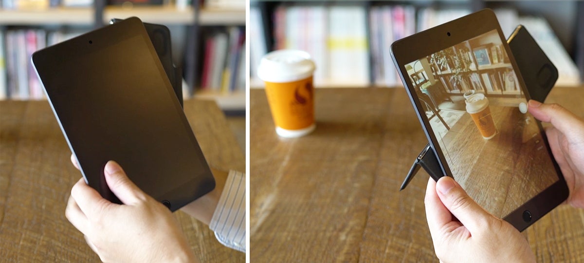 シーンに合わせて使いわけ。付属のスマホリングを使えば、長時間iPadをグリップしても手の疲れが軽減できます。マウント機構だからこそできる便利な使い方です。
