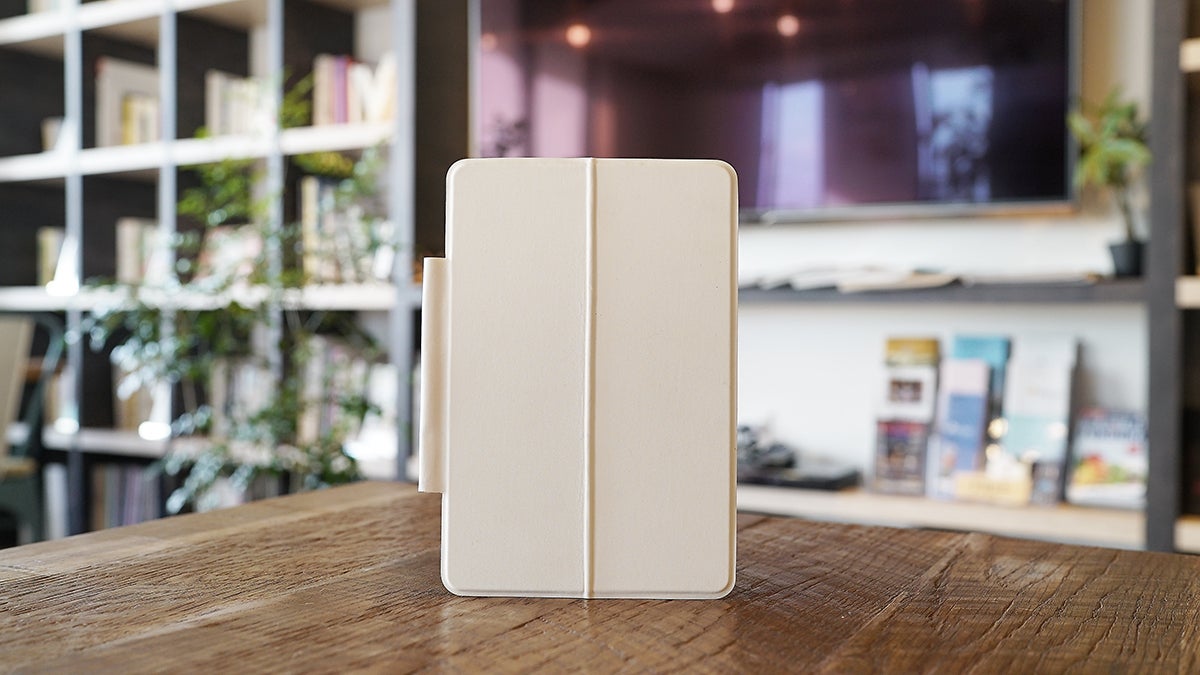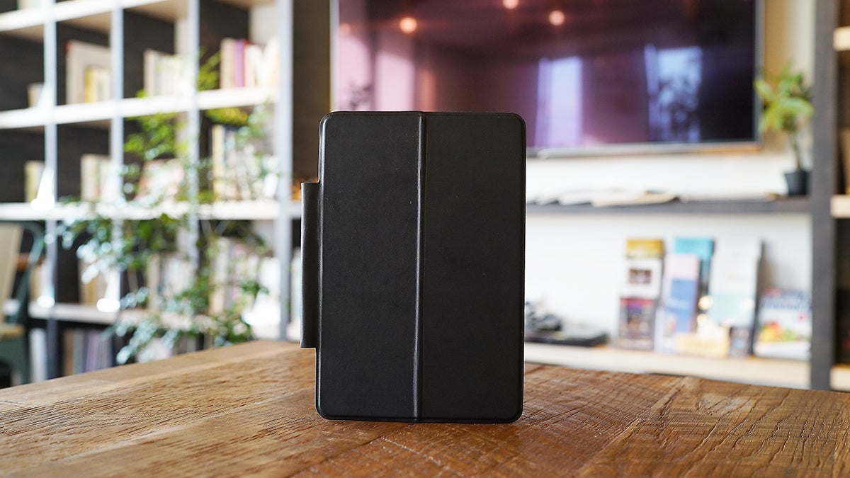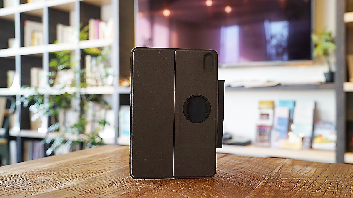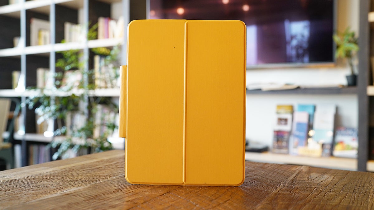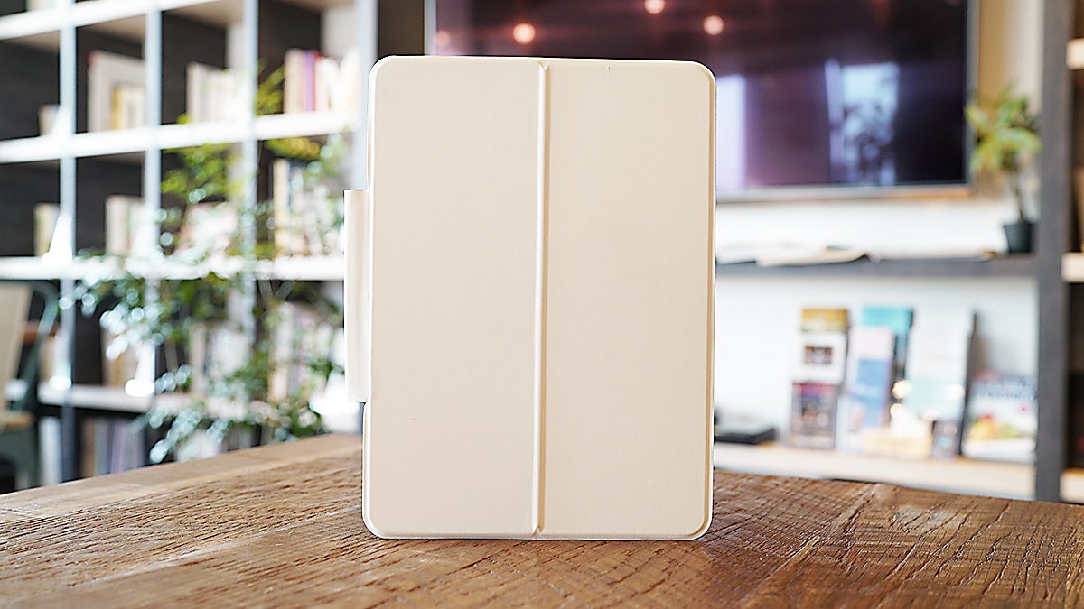 フラップケースでのスタンド利用だと、フラップ部分でスペースが取られて、机の上がごちゃついて見えます。