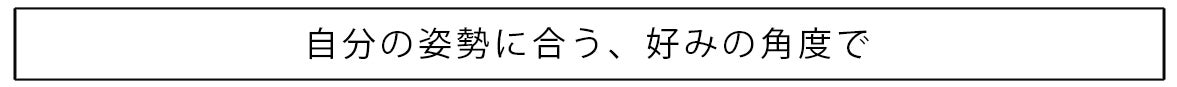 特殊なヒンジ機構(特許技術)により実現した、無段階の角度調整。お好みの角度で。