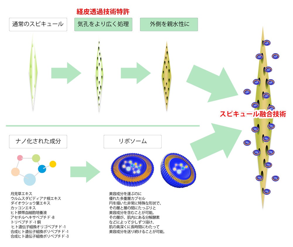 ナノ化した有効成分をスピキュールに融合して伝達することが可能です。