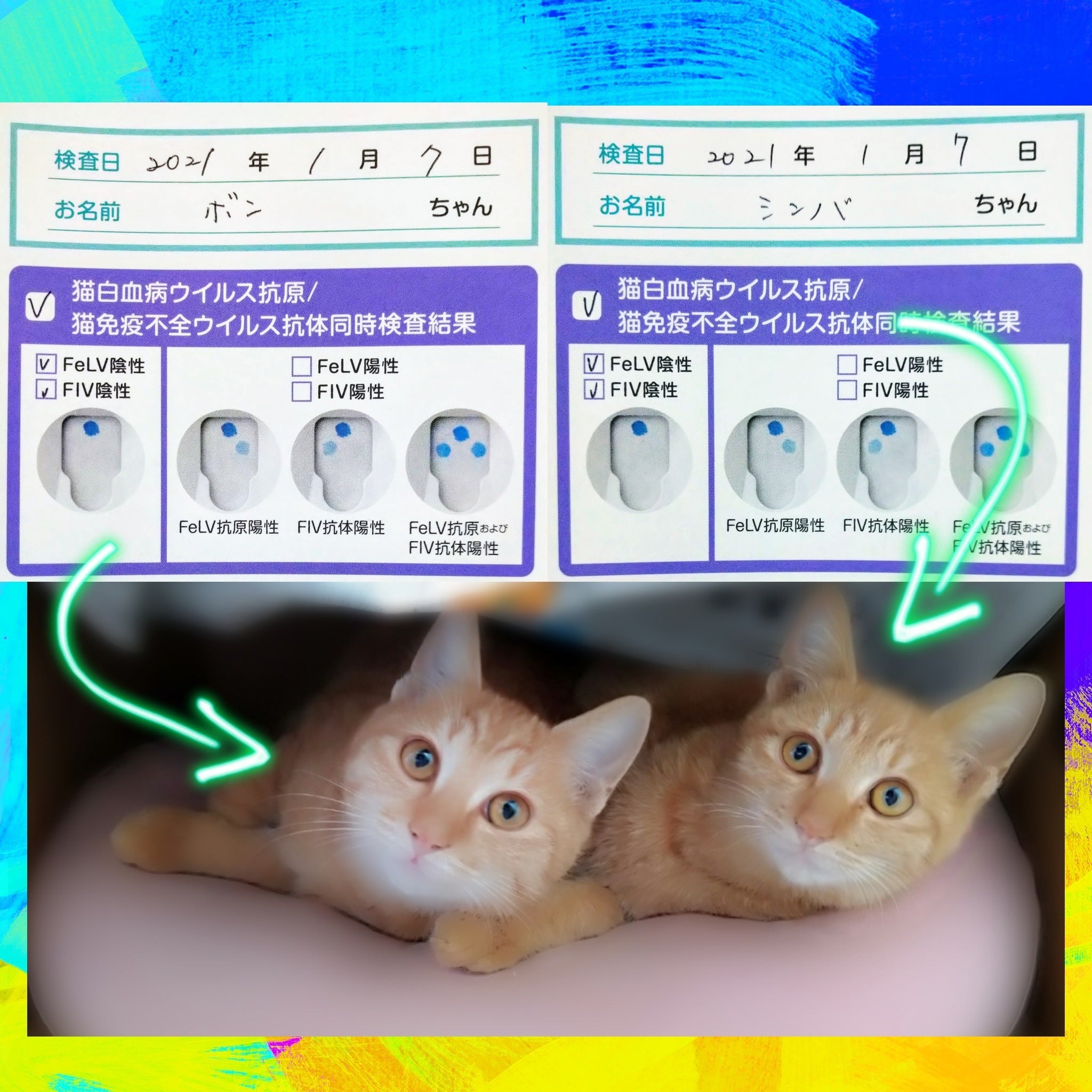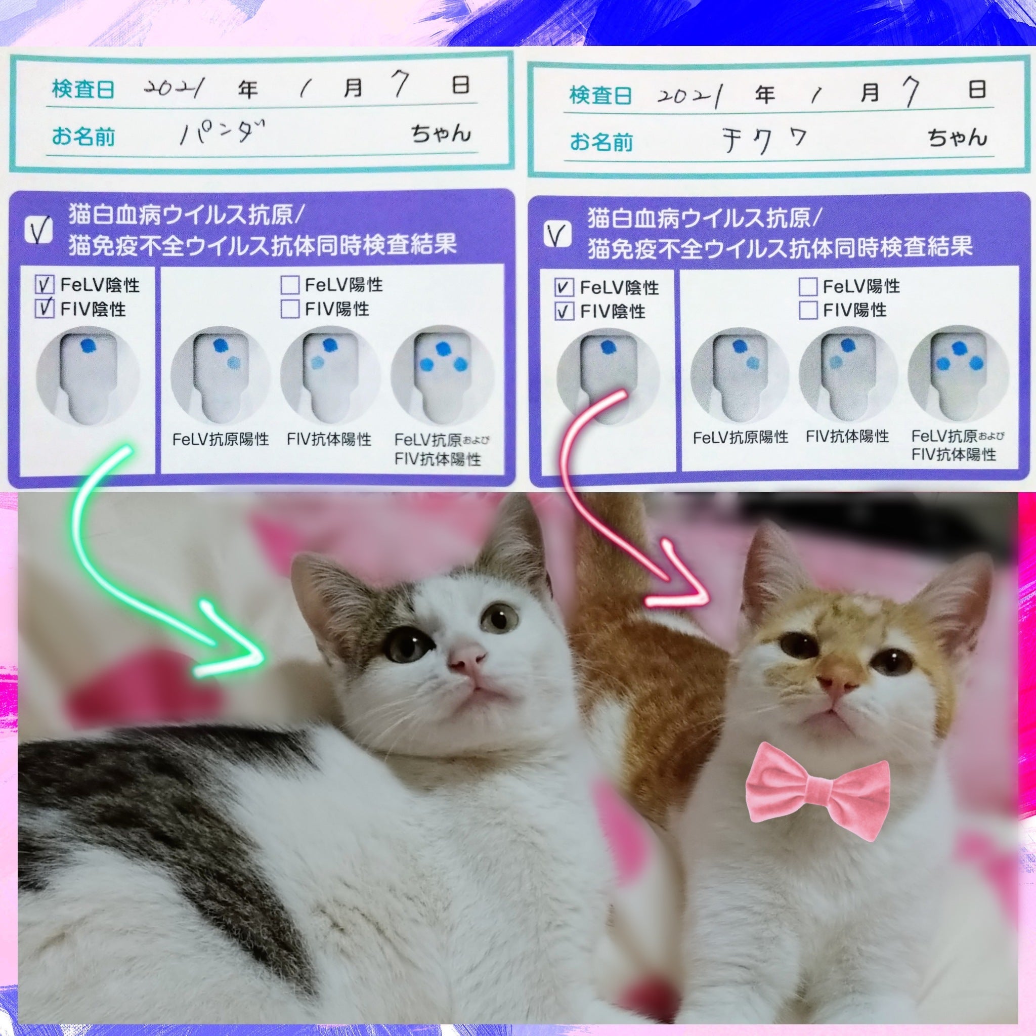 生後6ヶ月ならもう検査しても正確な結果が出るようなので、↑のこの子と一緒に子猫ちゃん達全員を連れて行き、検査を済ませました。