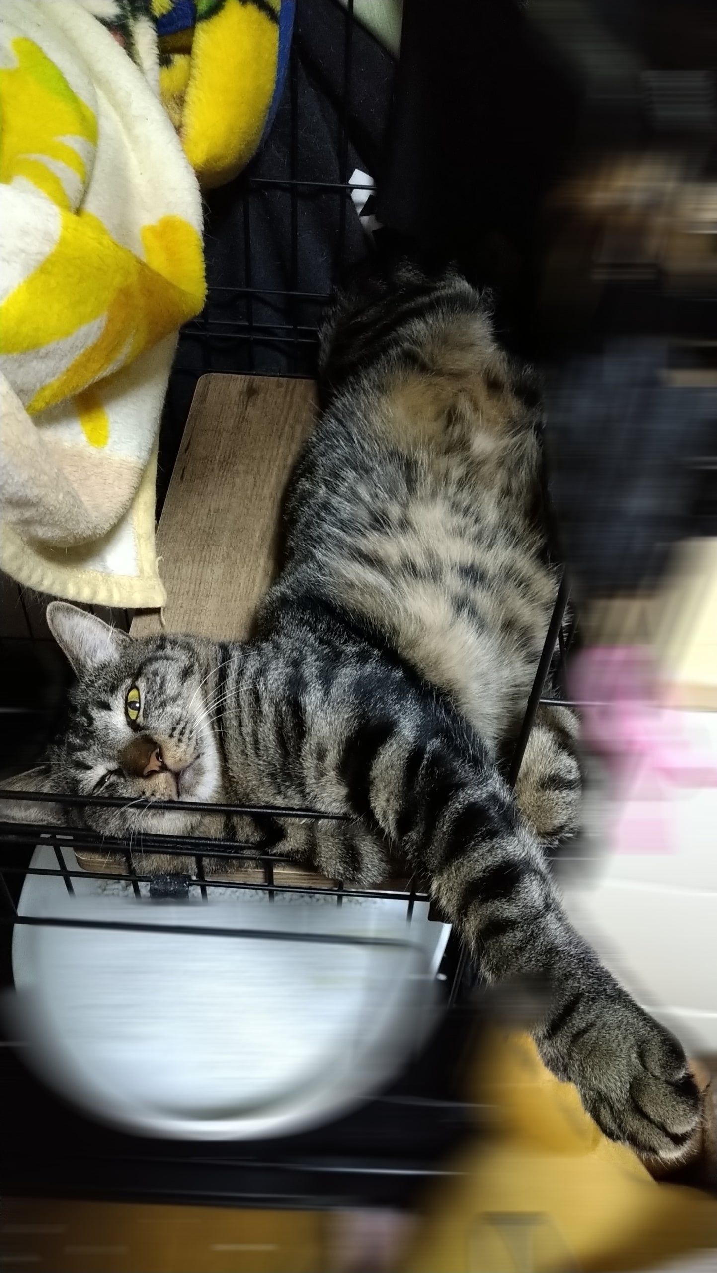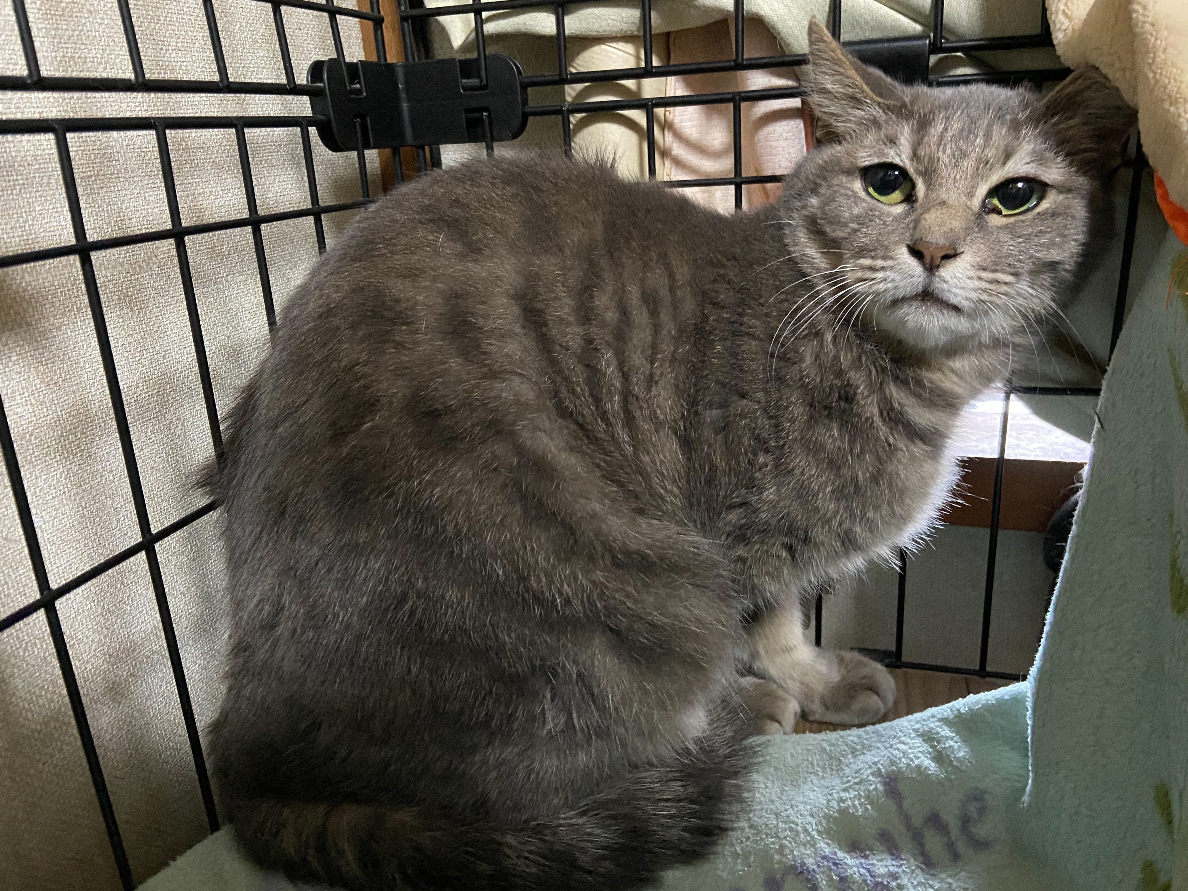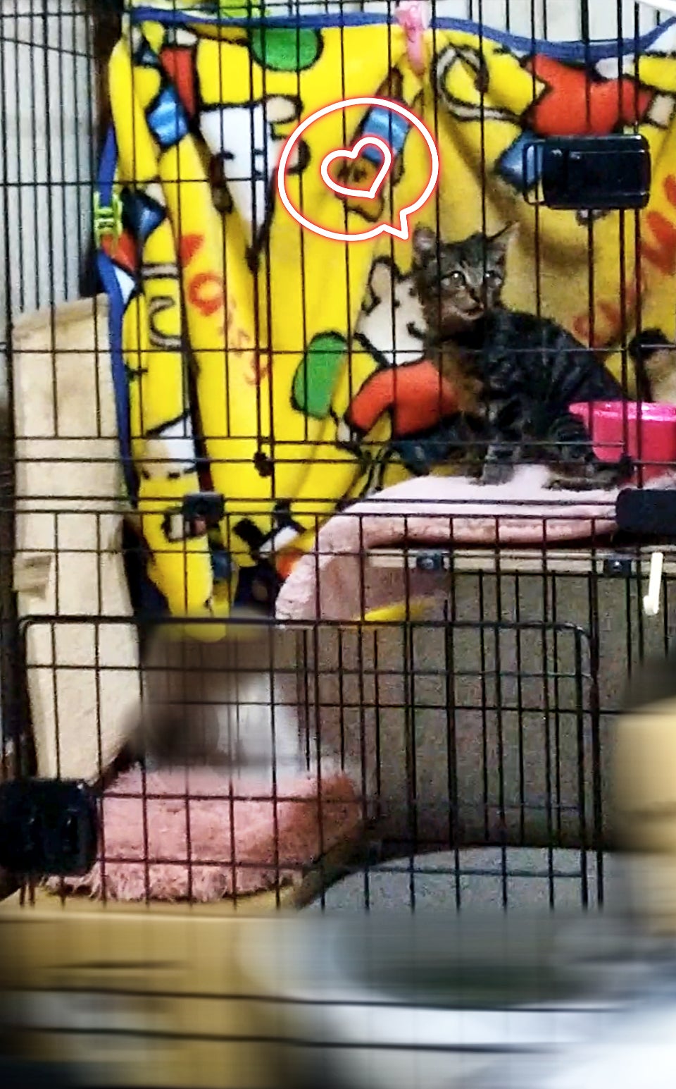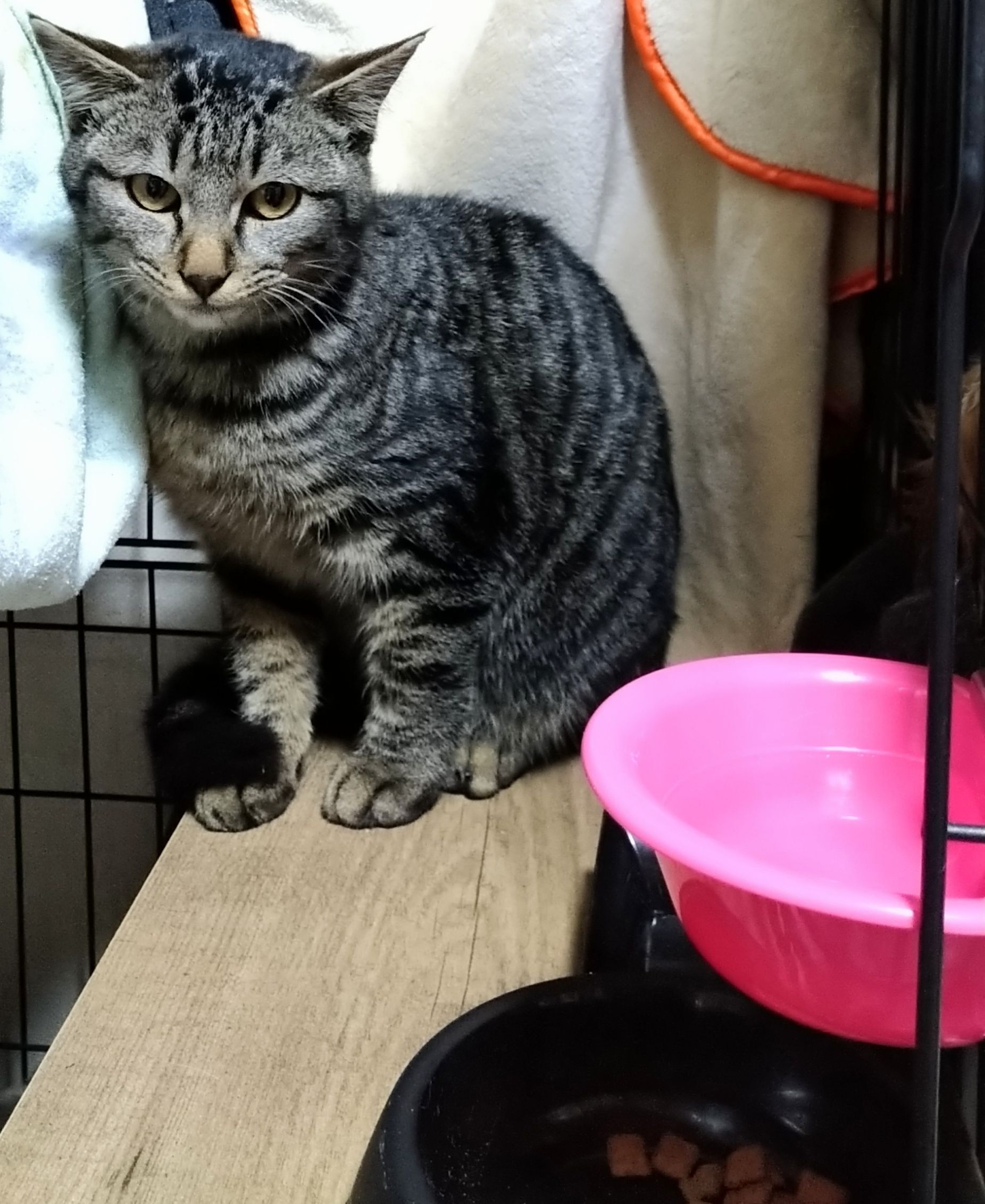 他の猫ちゃんたちや人に慣れるまでの間、今はケージで生活しています。