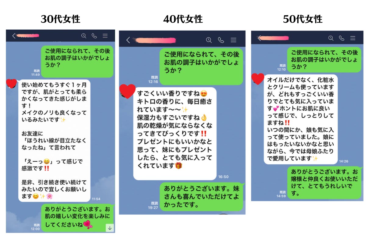 たくさんの方々に商品をお試しいただき、KITRO(キトロ)の公式アカウントに、ご使用後の感想などをいただきました。ほんの少しですがご紹介させてください。お名前やお写真は隠させていただきました。