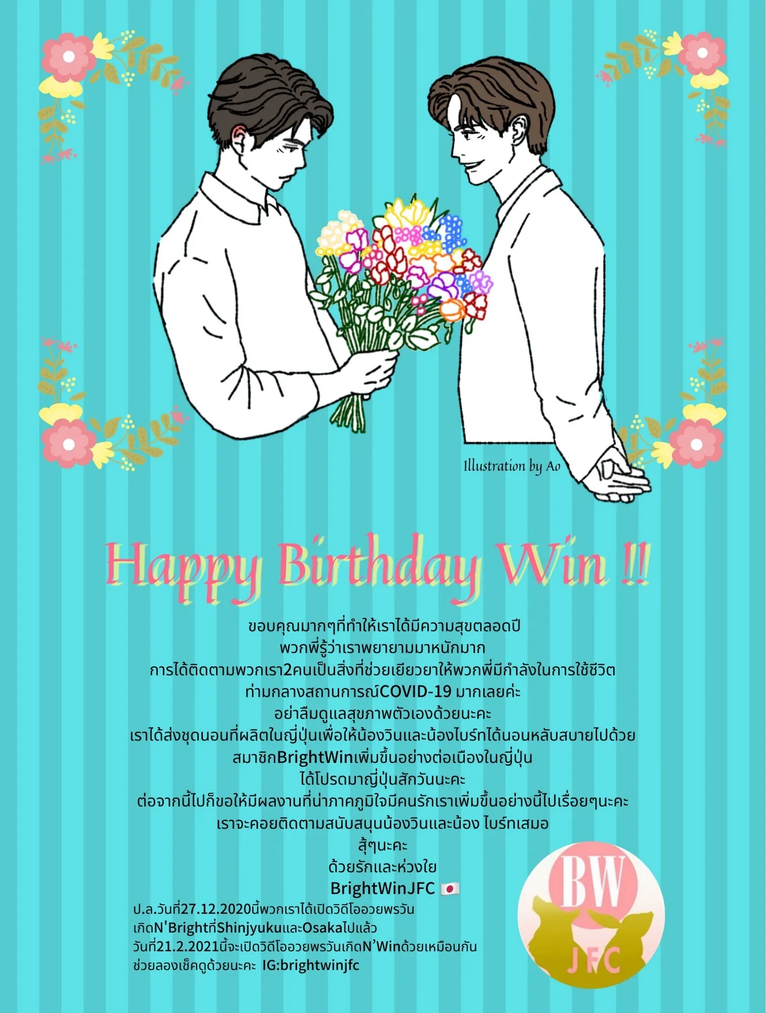 昨日に引き続き、WinくんとBrightくんへのプレゼントに関するご報告です。