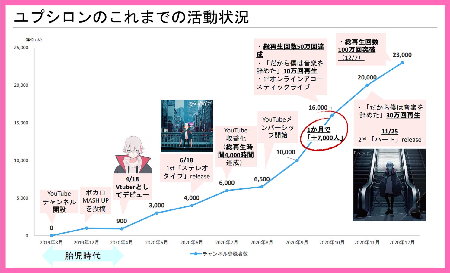 2020年4月18日にVデビューしてから、月2,3本のカバー曲投稿、毎週日曜日に生配信をYouTubeで行っていて、9ヶ月弱で約23,000人の方にチャンネル登録していただきました。