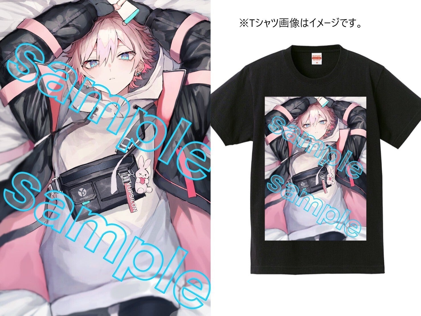 限定イラストがプリントされたTシャツ。色は黒、比較的厚めの素材を予定。 (サイズはS,M,L,XLから選択) ※支援時、必ず備考欄にご希望のサイズをご記入ください。