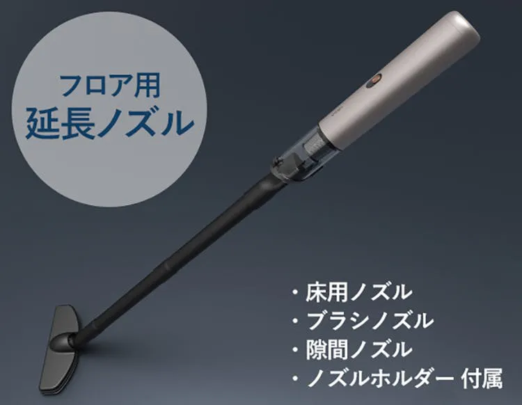 パワフルな吸引力を持つ「AutoVot VX」は、フロアクリーナーとしても大活躍間違いなし。延長ノズルがあれば、お部屋など広い範囲のお掃除にもお使いいただけます。使い終わると、簡単に解体できるので、収納スペースをとらないのも嬉しいポイントですね。