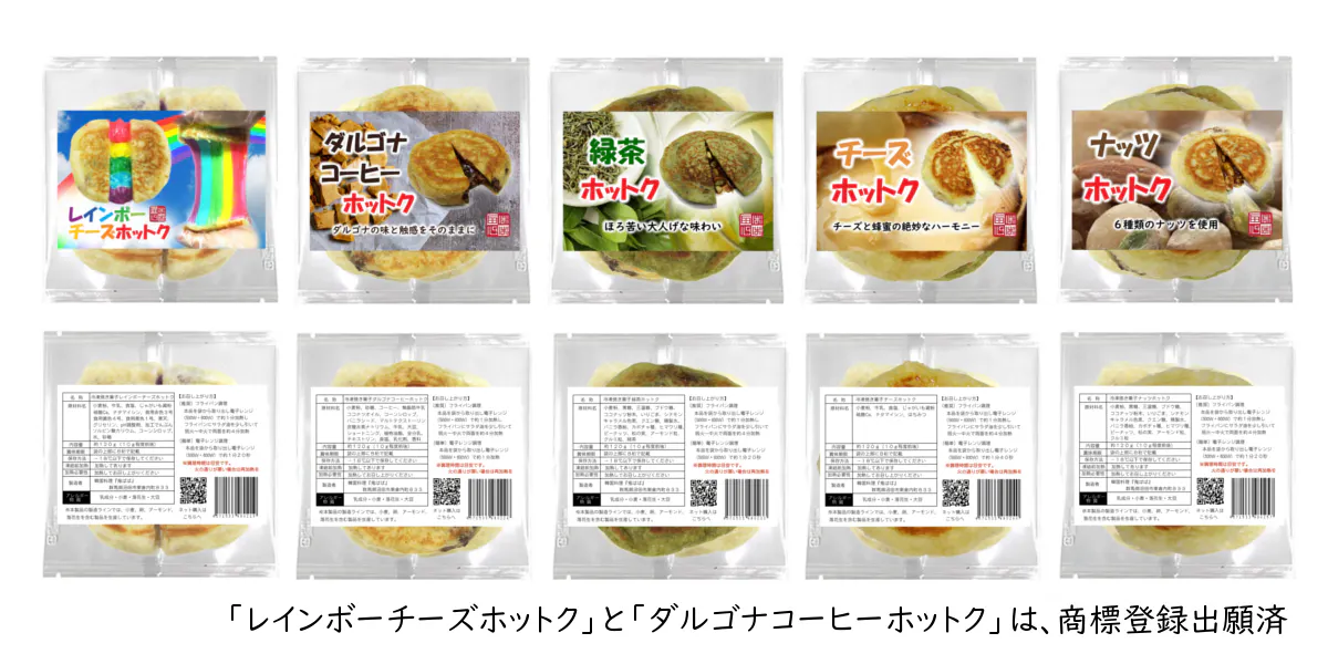 今回、妻が開発した「レインボーチーズホットク」や「ダルゴナコーヒーホットク」は、韓国にも無いオリジナルのもの。