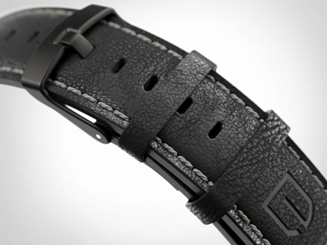 革ベルトはブラックに白ステッチとステンレスメッシュのブラックメッシュメタルベルトをご用意させていただきました。