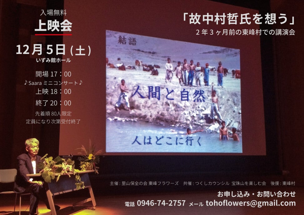 つい先日の2020年12月5日にも、「故中村哲氏を想う」と題して、講演当日の映像上映会も主催させて頂き、改めて「山、川、水、海」と言う「日本の里山と人間と自然との生き方」に関して深い想い、考えを共有させて頂きました。