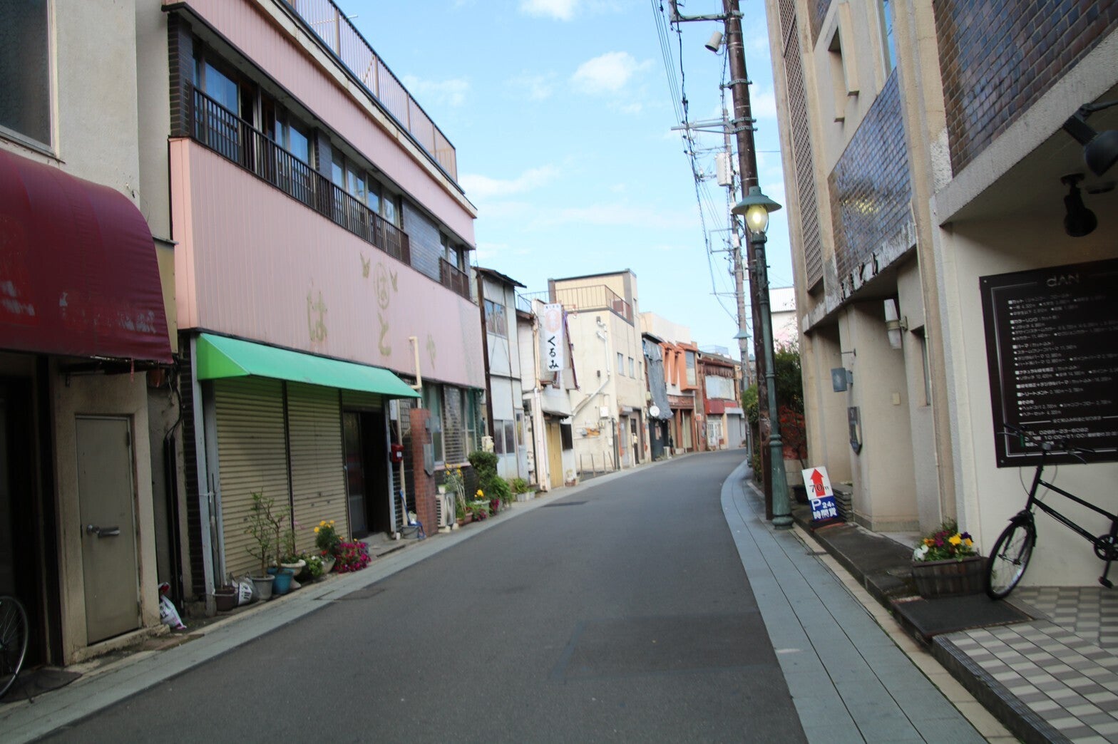 対象となる建物の近くには、おしゃれなBarがありますし、夜になると隣のスナックからは歌声が聞こえてきます。さらに北へ進んだところにある創業100年を超える酒屋さんでは、美味しい日本酒を勧めてくれます。その隣には昔ながらのお肉屋さんがあり、コロッケを買い食いできたりして…。
