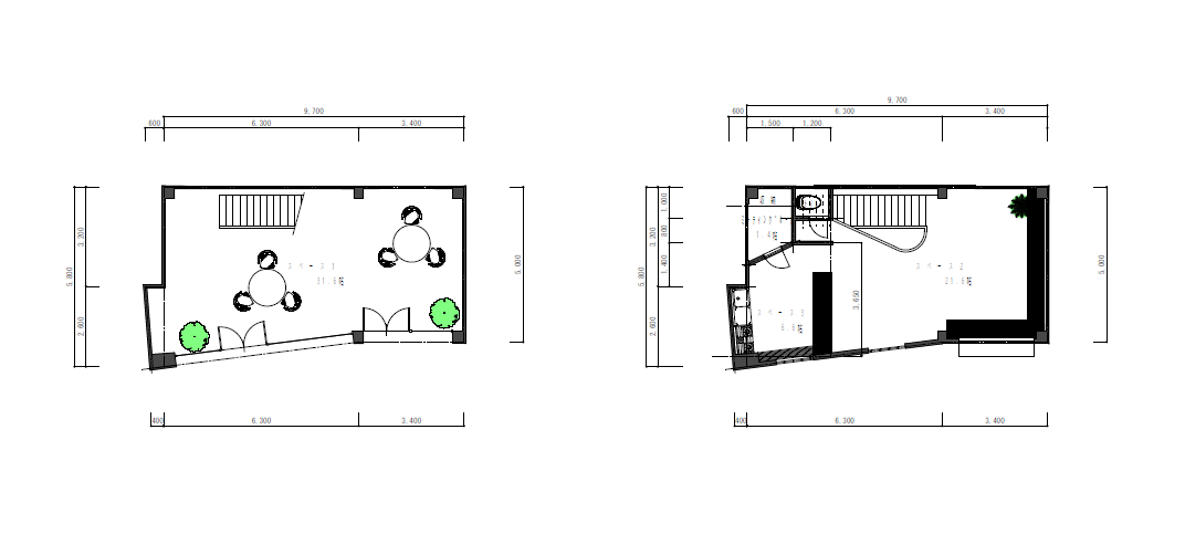 リノベーションする建物SEKEN内装イメージ図(左:1F 右:2F)