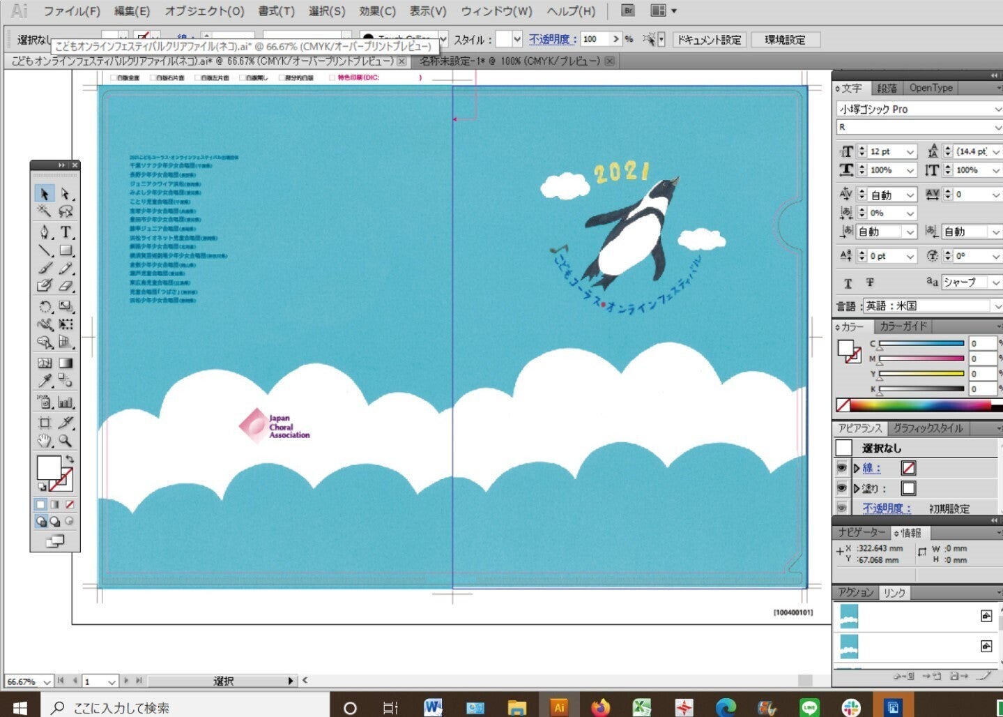 オンラインフェスティバルのクリアファイルを作製中。