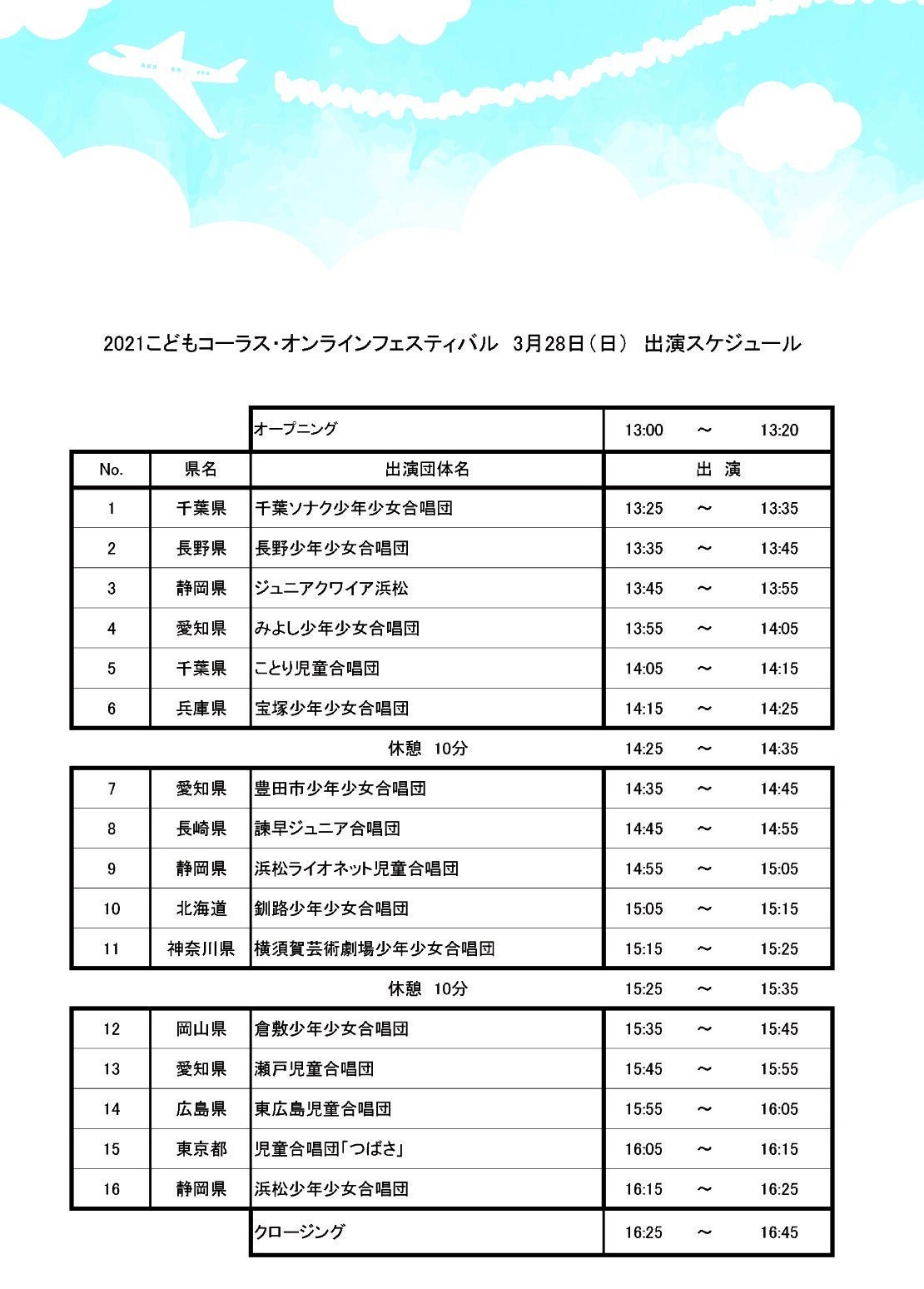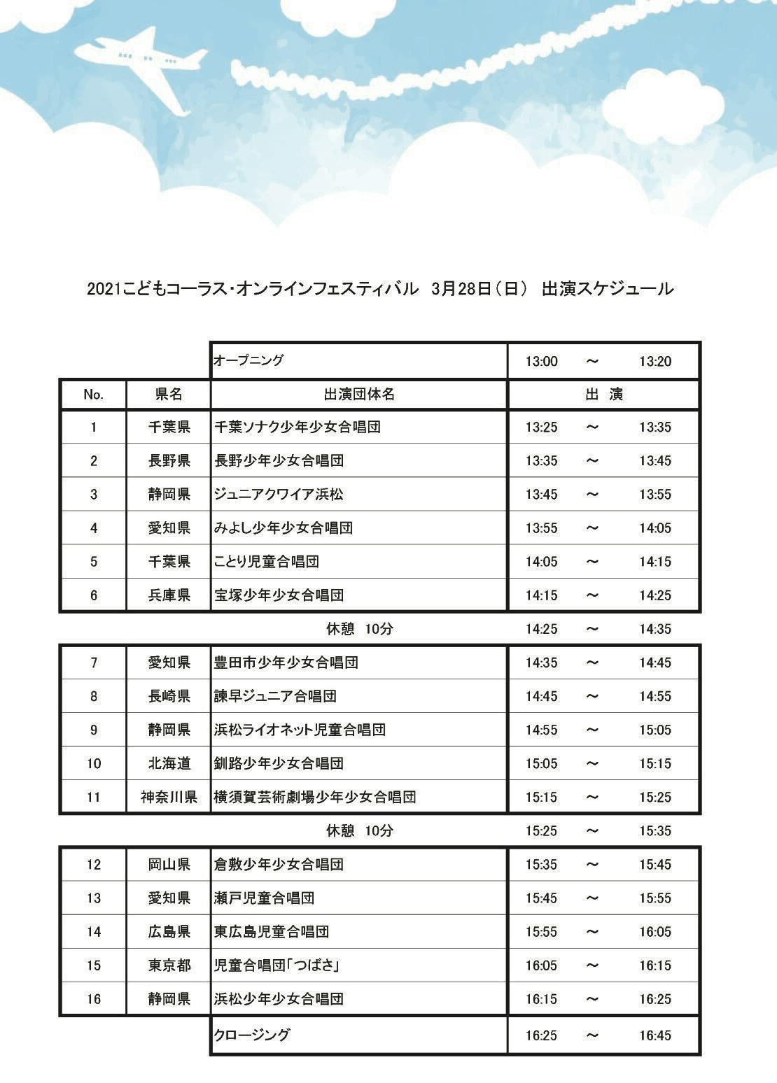 3月28日(日)のオンラインフェスティバルの出演順が決定しました!