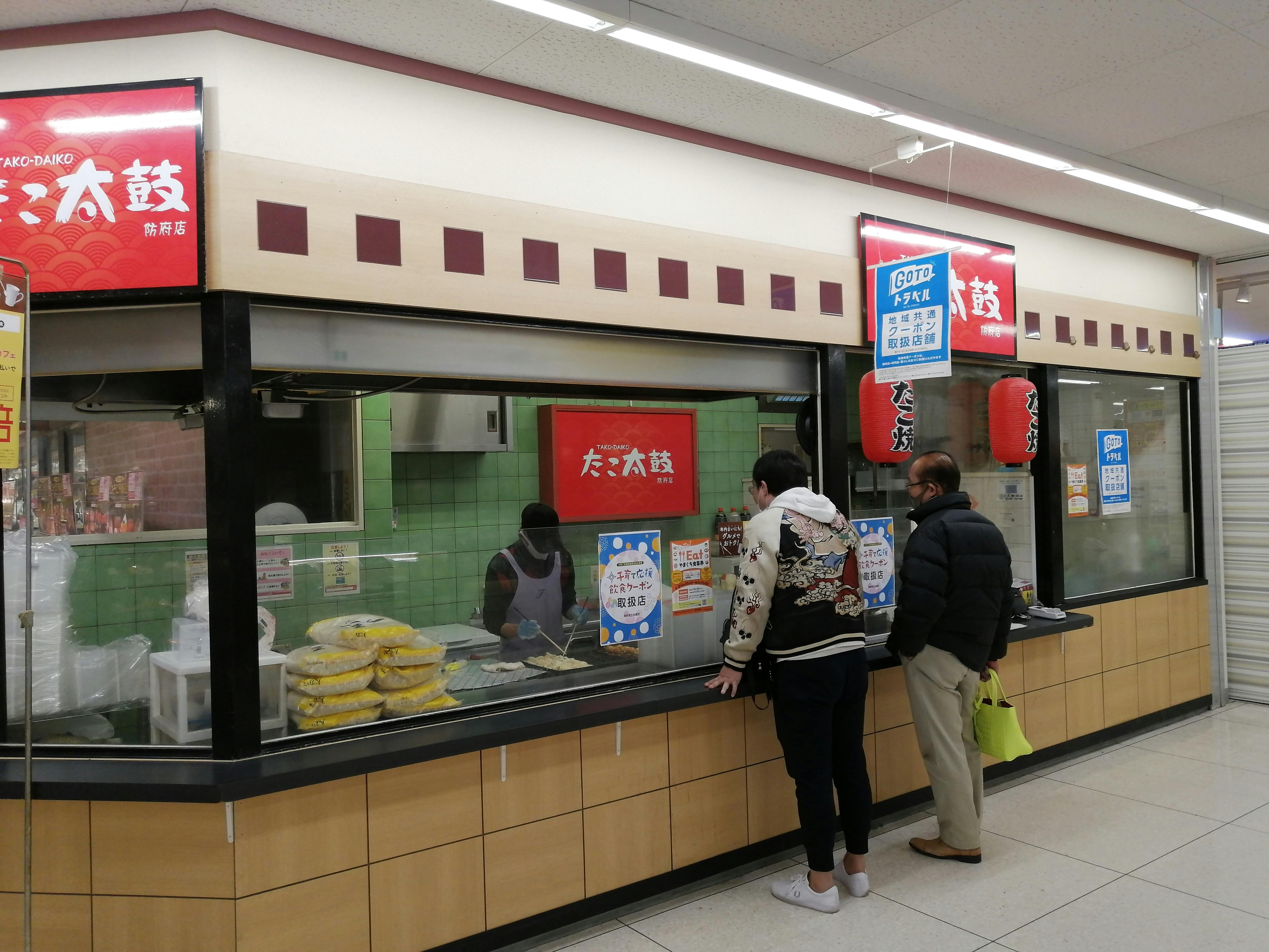地域で唯一のタコ焼き屋が、後継者不足により廃業の危機にあります。駅前の一等地に立地し、近所の方や学校帰りの学生がよく行くスーパーのテナントです。山口県防府市中央町にあるイオン防府内「たこ太鼓」です。営業時間は10時~19時。年中無休の店です。もちろん現オーナーに掲載許可をいただいています。