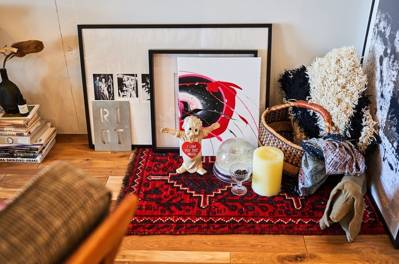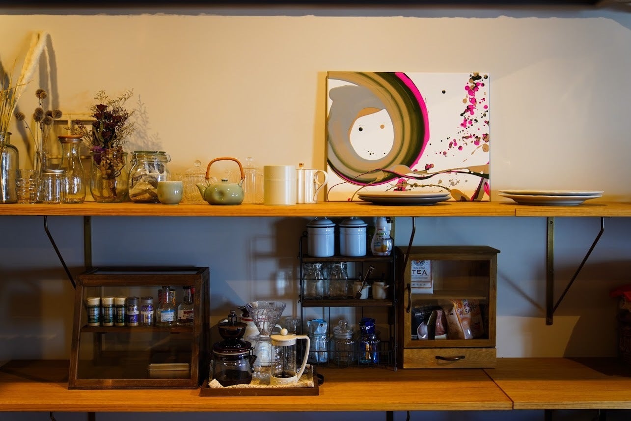 小さい頃からものづくりが好きで、特に色に興味があった私。服飾関係の仕事をしている友人から挿し色について教わったりしていました。家は、意識しないと似たような色のモノが集まるもの。そこにアートで「外し」の色を入れられるといいな、と考えたのです。