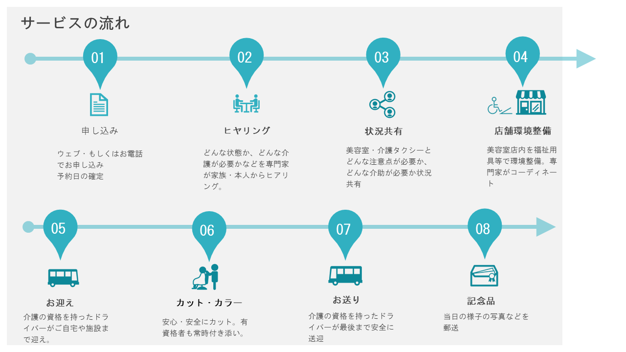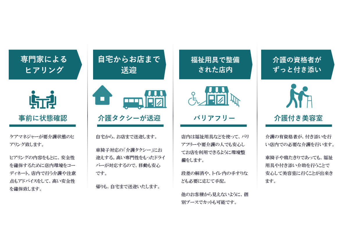 美容室へのお出かけという機会の提供により、心身共にリフレッシュできる、充実したシニアライフへ貢献できることを心待ちにしております。