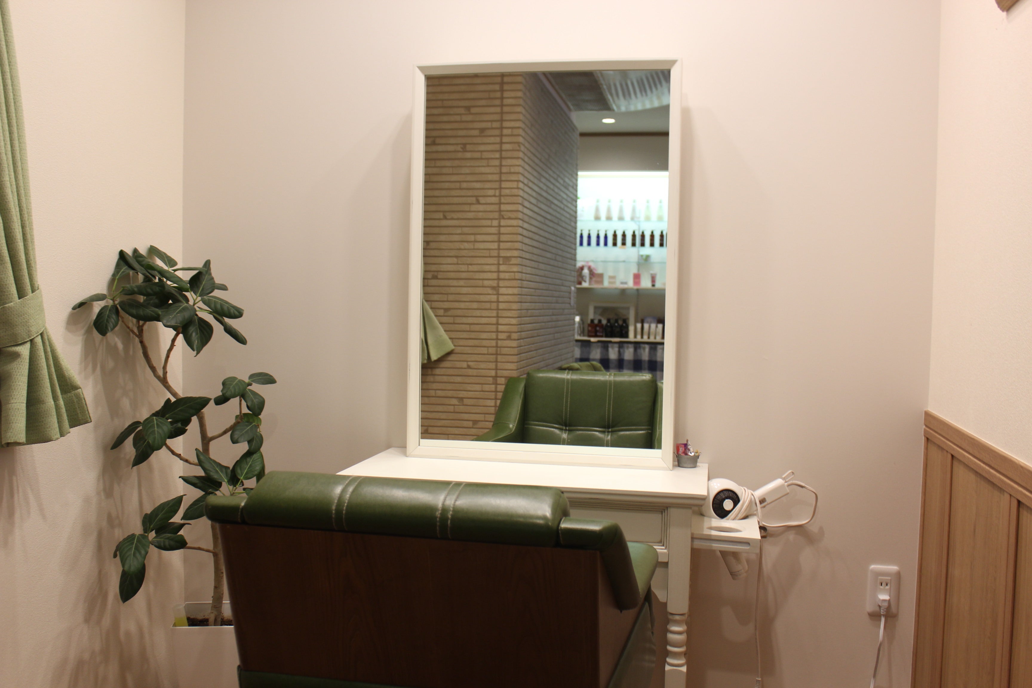 車いすで美容室に来ていると、やっぱり周りの目線が気になる・・・というご意見を頂き、美容室内に個別ブースをご用意致しました。