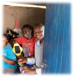 写真2,青いドアの向こうから笑顔をのぞかせているのは、以前からNiko Nikoプロジェクトを知るHANDSの元職員エマニュエルです。プロジェクトのコーディネーターを務めることになりました。