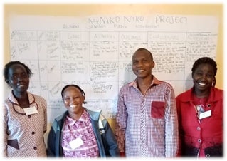 これを聞いたプロジェクトチームは、ことの重大さにはたと気づきました。製作現場を訪れ優れた品質の商品を手に取り、さらにマーケティングを考え始めるきっかけとするというナイロビ見学の目的は伝えてあったはず。カロラインとエミリーのうち、ナイロビ見学には製造よりもむしろ販売やマーケティングに、後日予定しているキスムの工場見学には製造に向いている方を、適正だけでなく本人の興味も加味してボニスが決めることを期待していたのです。彼女たちはこれまで地域保健ボランティアとして、HANDSを始めとする大小の開発パートナーたちが提供するプロジェクトに招かれ参加してきました。開発パートナーたちは途上国の人々の自立発展性を唱えながらも、与える側とそれを受ける側といった不均衡な関係は根深いところに存在します。彼女たちには起業する者としてのマインドセットに切り替えてもらわなければおそらくNiko Nikoは成功しないでしょう。エマニュエルによると、「保健ボランティア」と「起業家」が両端にある「マインドセット」という1メートルの物差しがあるとすれば、彼女たちは「保健ボランティア」からまだ20センチも「起業家」に近づいてない、と言います。