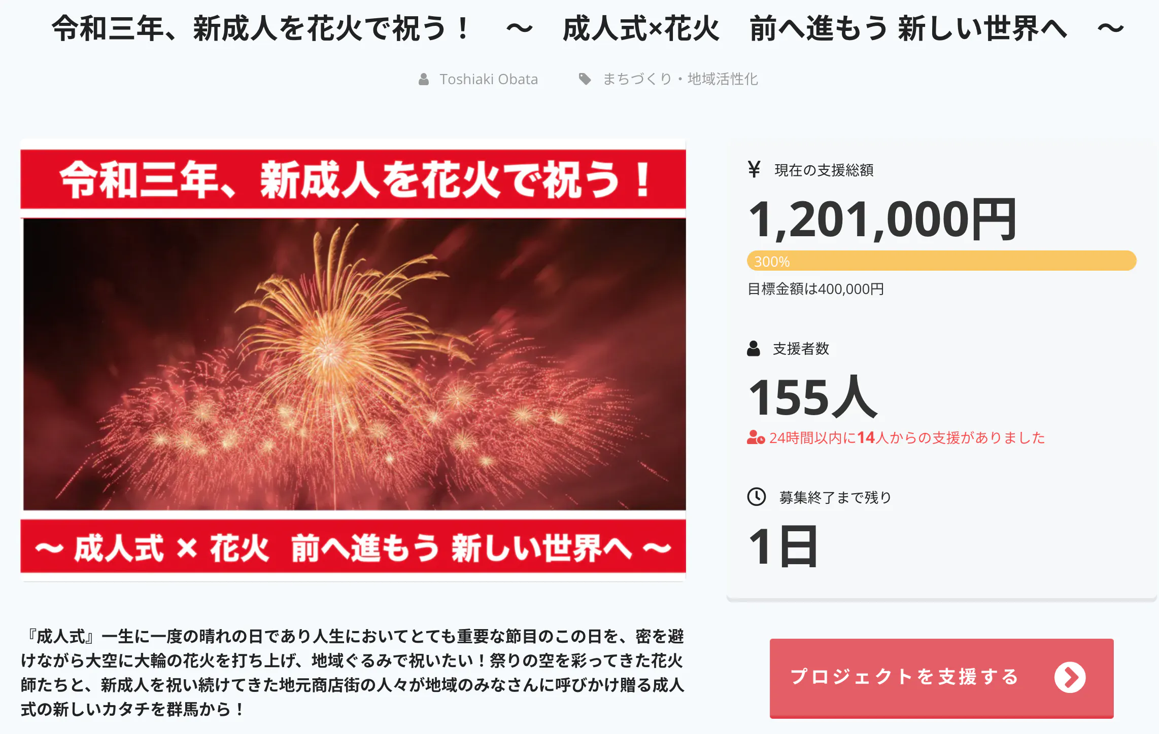 このプロジェクトは、2020/12/15に募集を開始し、 192人の支援により 1,639,000円の資金を集め、 2021/01/05に募集を終了しました