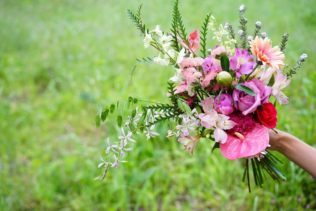4. 農家さんから直送してもらったお花を束ねたブーケを発送。<代表前田有紀からの感謝のハガキ、オリジナルポーチ付き>10,000円。