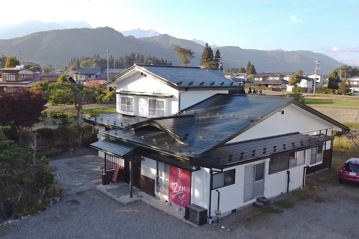 大町市の静かな郊外に佇むZenは、オーナーシェフの小田純司さんと、食育アドバイザーの美恵さん夫婦が営むレストラン。一日4組限定、完全予約制・個室制で、全粒粉をふんだんに使ったコース料理が楽しめます。お二人は、大町市に移住する前、千葉県で全粒粉100%のパスタ・パン・スイーツ等を提供するカフェを営んでいました。純司さんの長年の調理経験と、子どもの育児を通して全粒粉に出会った美恵さんの料理研究の成果を活かして2009年に始めたお店です。その後食の安全が揺らぐニュースが増える中、空気と水がきれいな場所で、より安心で質の高い食を提供したいとの思いから大町へ移住。2017年に「山麓ファームダイニング 健菜樂食Zen」をオープンしました。