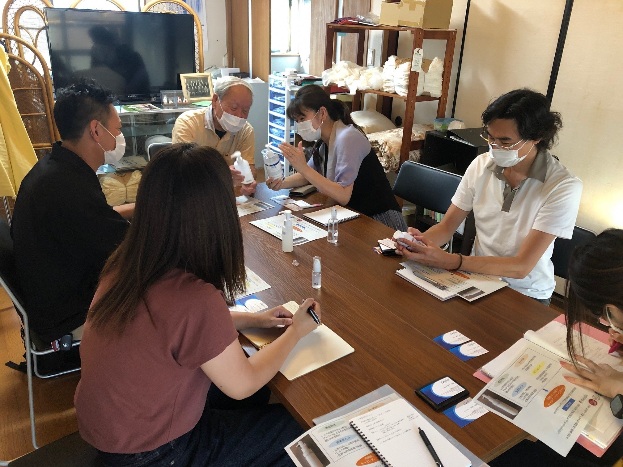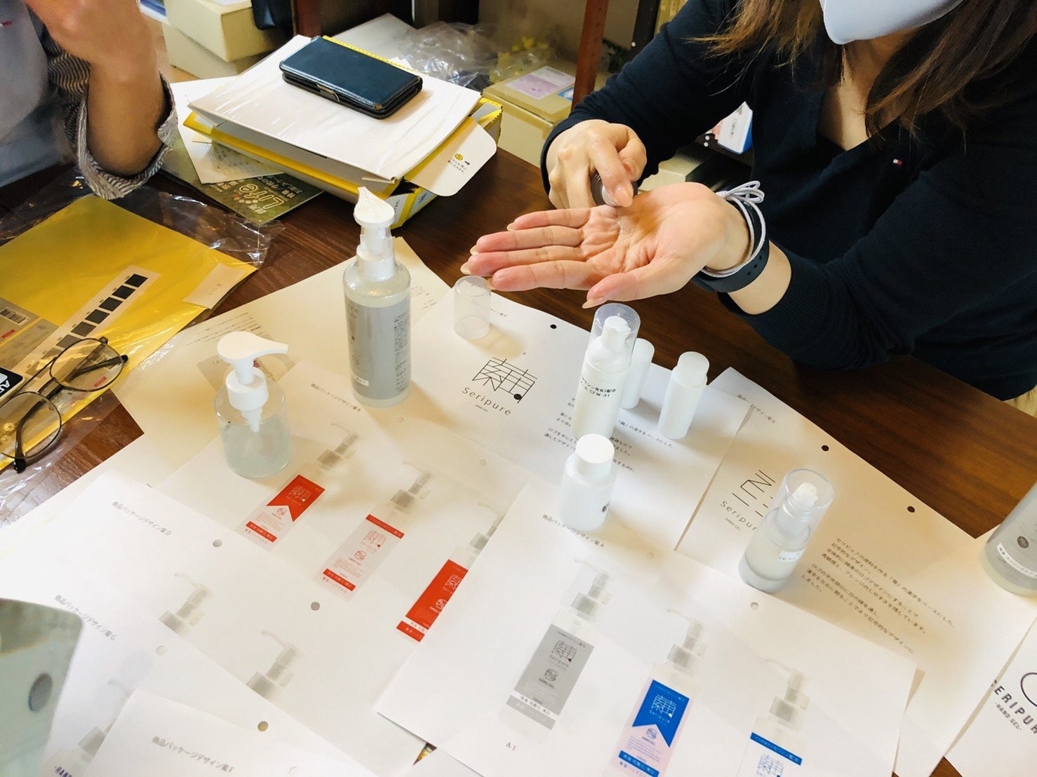 完成した「セリピュアハンドジェル」を地域の女性や関係者に試していただきました。