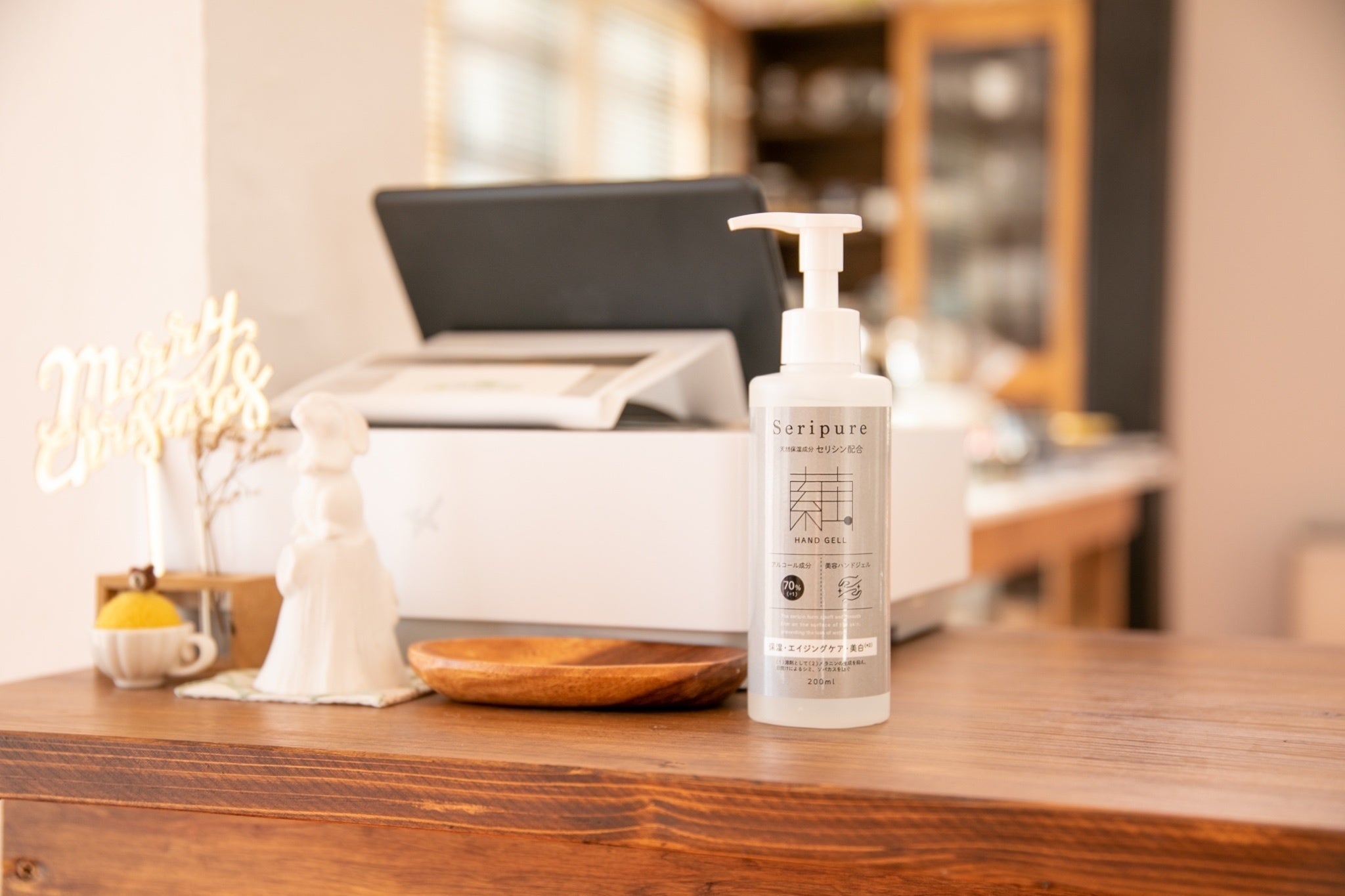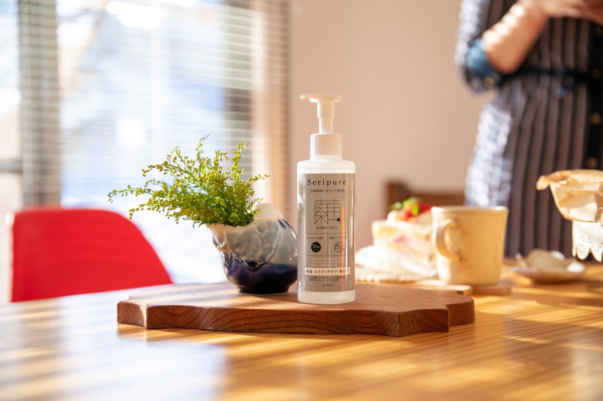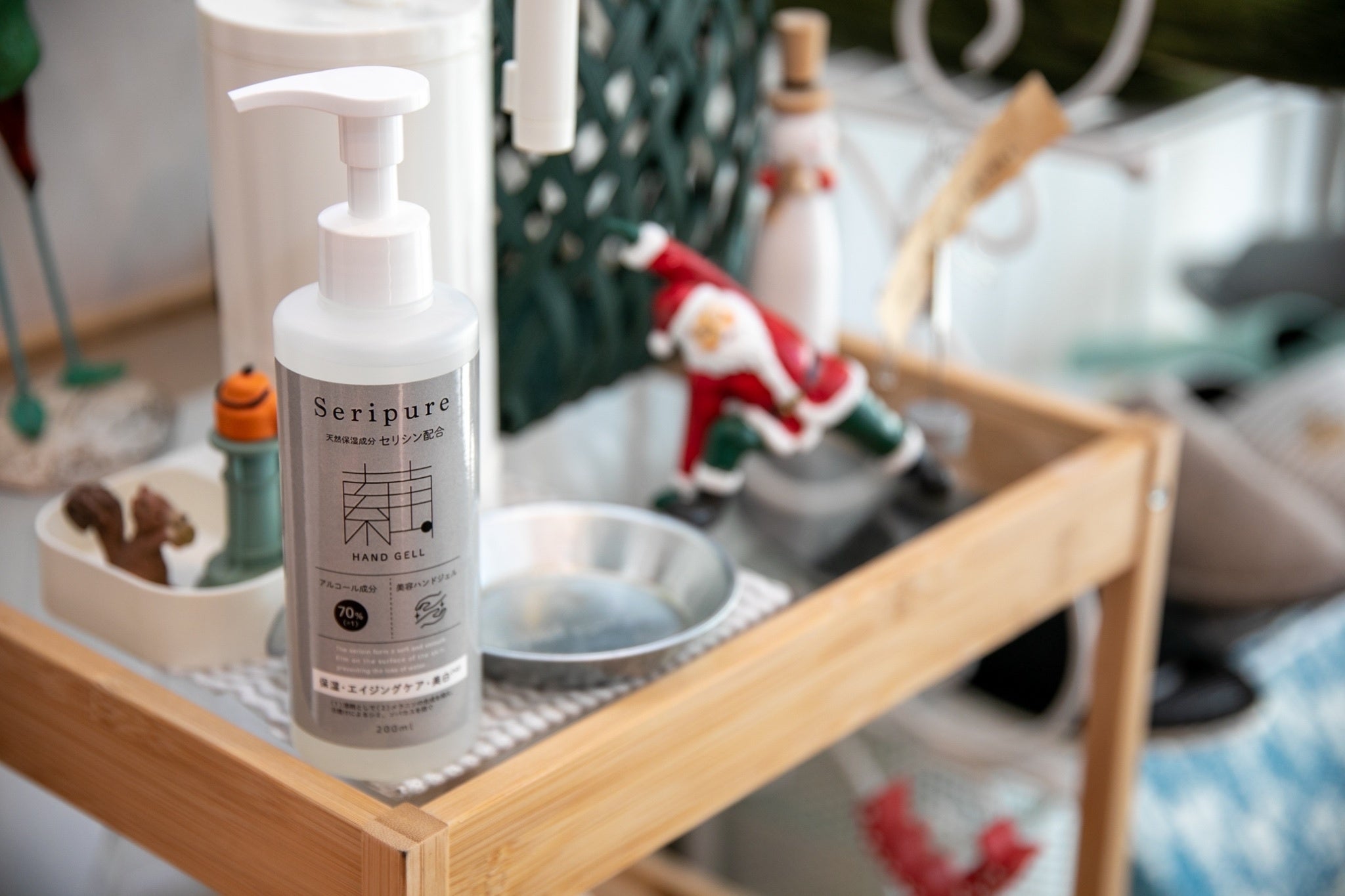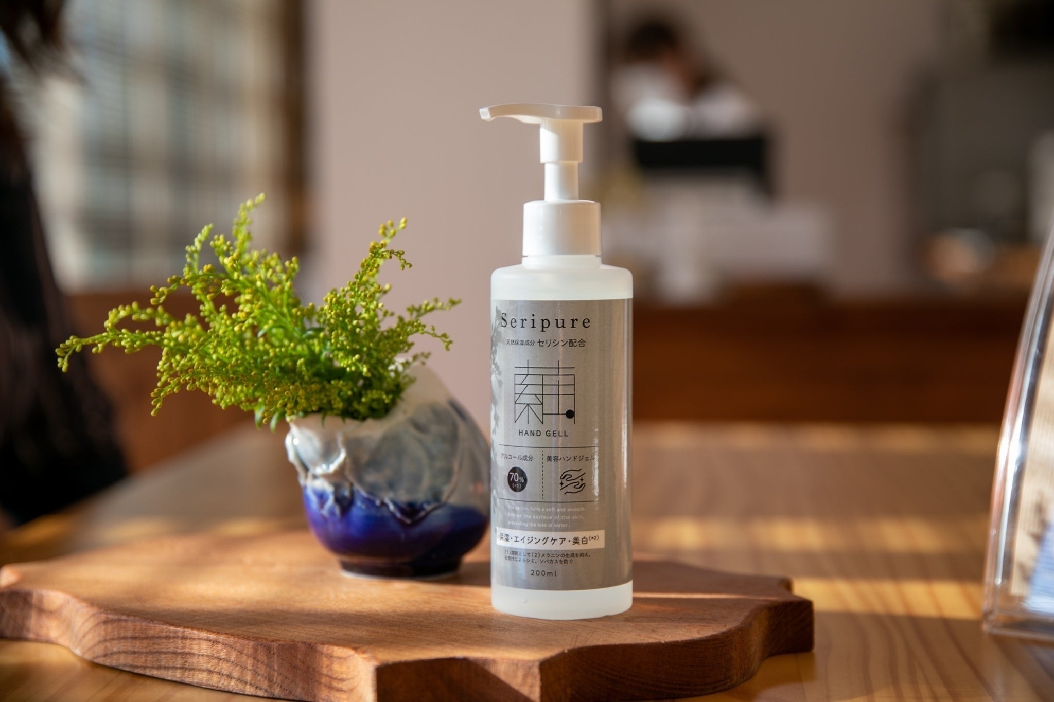 「セリピュアハンドジェル」は200mlプッシュポンプ型容器入りになりますので、ご自宅やオフィスなど生活空間の中で常設しご使用いただけます。持ち運びされたい方は、小さな容器などに詰め替えてご使用ください。