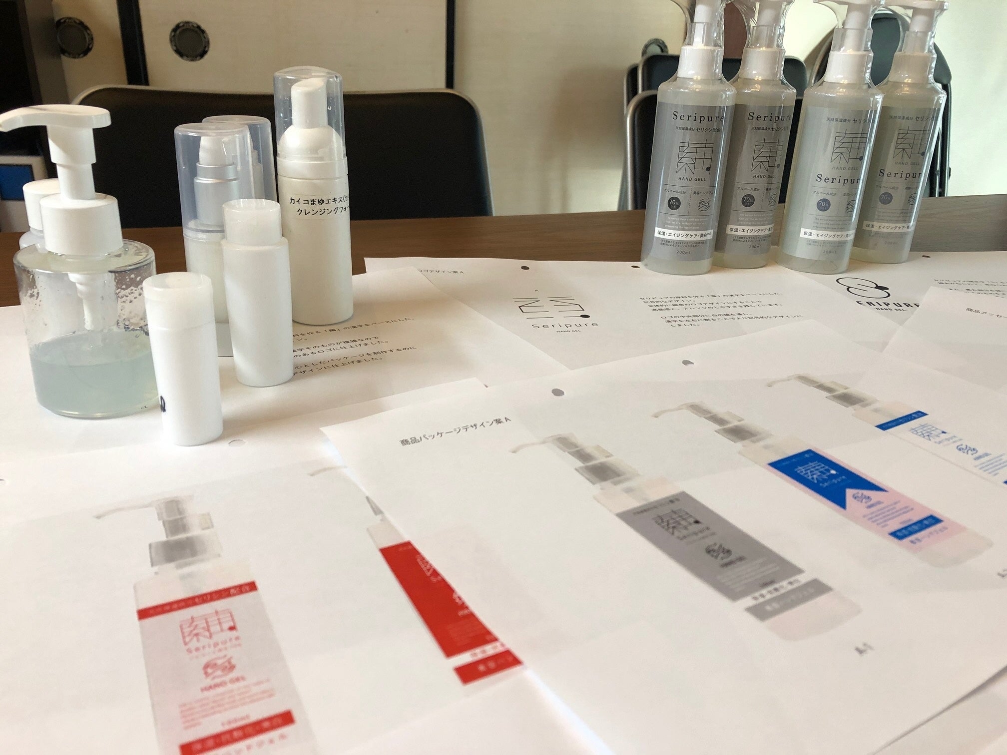 この「セリピュアハンドジェル」の商品開発のきっかけは、私がかねてからセリシンの高い保湿効果を美容関係に生かしたいと思っていたところに、滋賀県ものづくり推進課や一般社団法人滋賀発明協会などのご縁を通じて、滋賀県で化粧品の研究開発から製造まで行っている会社があるよと紹介いただいたことから始まります。