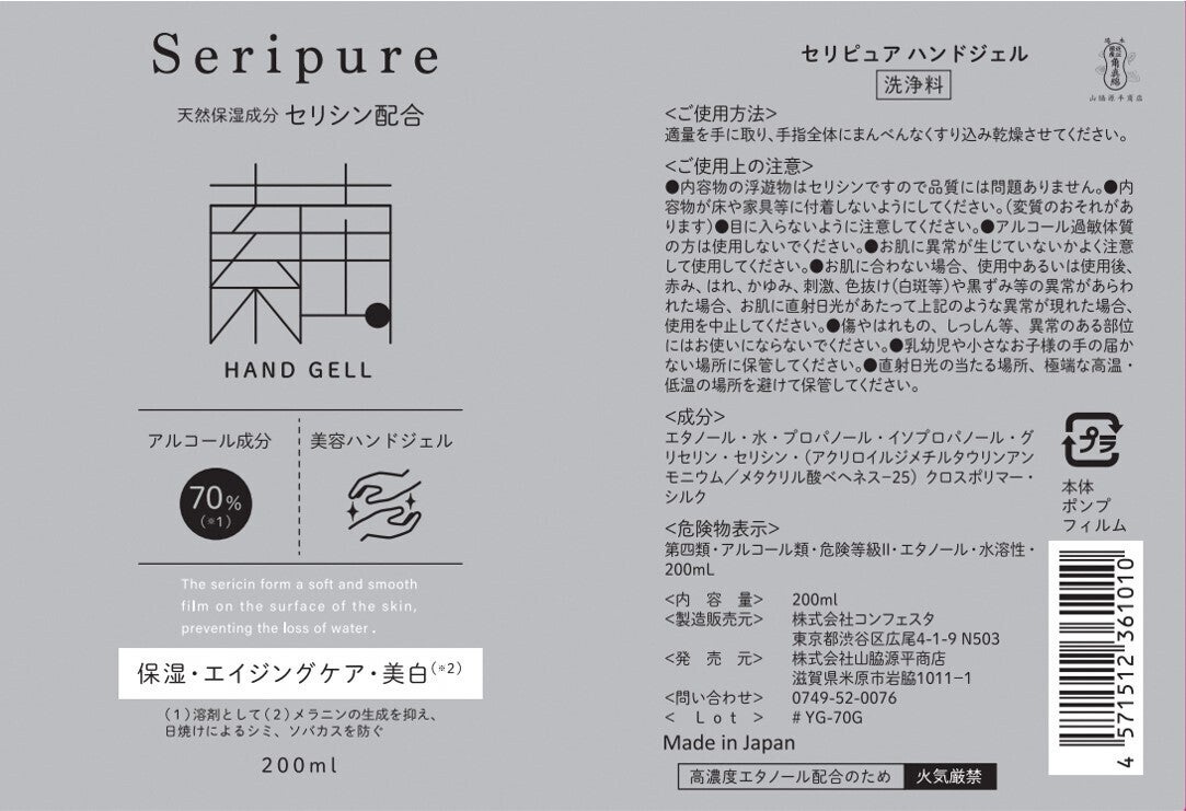 「セリピュアハンドジェル」は、滋賀県に拠点をもつ安心の国内化粧品会社・株式会社コンフェスタとの共同開発により生まれた商品です。