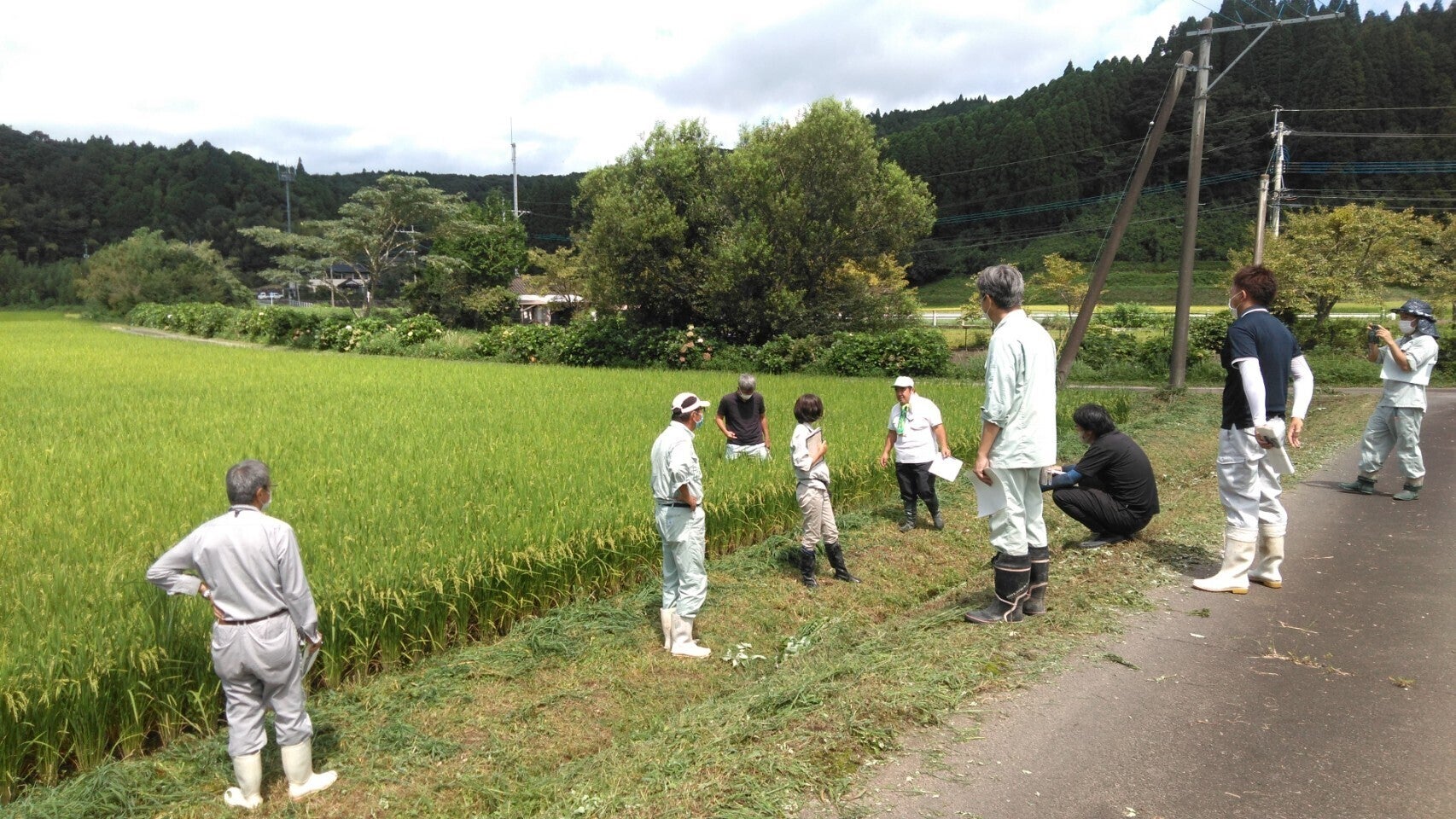 三瀬村で佐賀県の稲作圃場の調査と今後の管理に関する検討会が行われました。普及センターや農業試験場、農協の職員さん等によるものですが、具座の田んぼも調査が行われたので立会することが出来ました。大雨による被害も無くて今のところは順調な生育で管理状況も良好のようです。9月1日から地域内の稲刈りも始まって、もう少しで美味しい新米が食べられます。