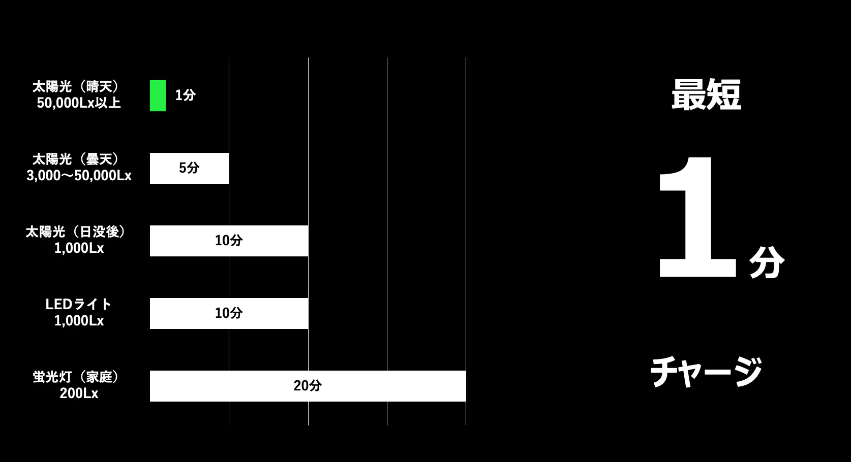蓄光時間:最短1分