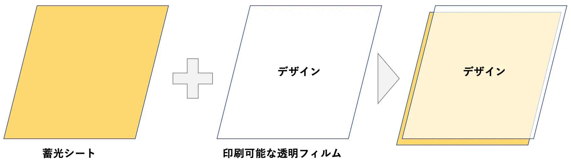 シートの最表面はPET素材でできているため、家庭用のインクジェットプリンタではインクが定着しづらい可能性があります。そのため、インクジェットプリンタで印刷可能な透明フィルムにデザインを印刷後に蓄光シートに貼り付けされることをオススメいたします。