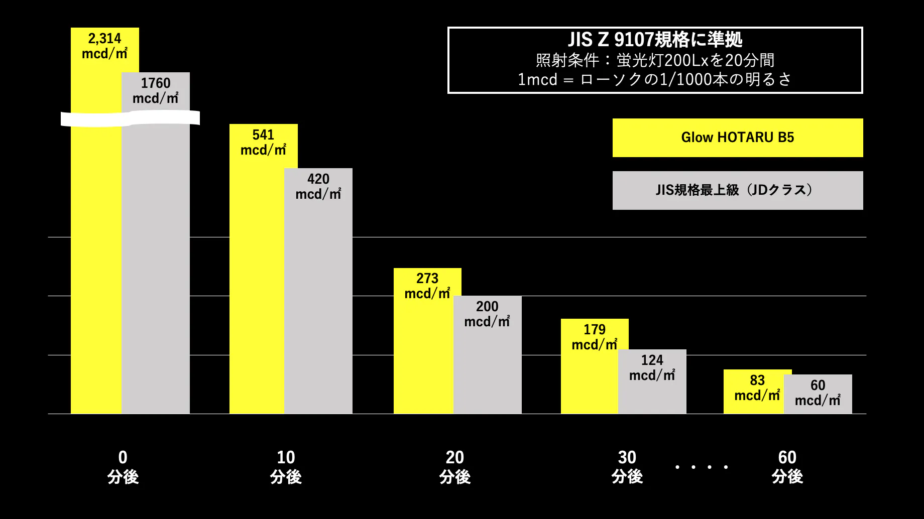 <Glow HOTARU B5 グリーンとJIS規格最上級との比較(目安)>