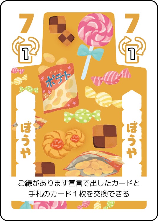 キャラクターごとの、カードにさまざまな「お供え物」イラストを使わせていただきました。